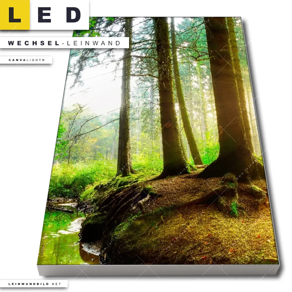 Du bist auf der Suche nach einer Landschaften, Wald - Bäume Wechsel-Leinwand für Dein LED-Leinwandbild im Hochformat? Begriffe wie Baum, Bäume, Natur, Sonne, Sonnenstrahlen, Licht, Fluss, Sonnenlicht, Bach, Baumkrone, Wald haben Dich auf der Suche nach Deiner Ersatz-Leinwand für dein LED Wandbild mit wechselbarer Leinwand inspiriert? Farben wie Grün, Braun, Hellgrün dürfen auf Deinem neuen Wechselmotiv für Dein XXL Leinwand-LED-Bild nicht fehlen und Leinwände im Natürlich - Realistisch Stil für Leuchtbilder passen perfekt zu Deinem Einrichtungsstil?