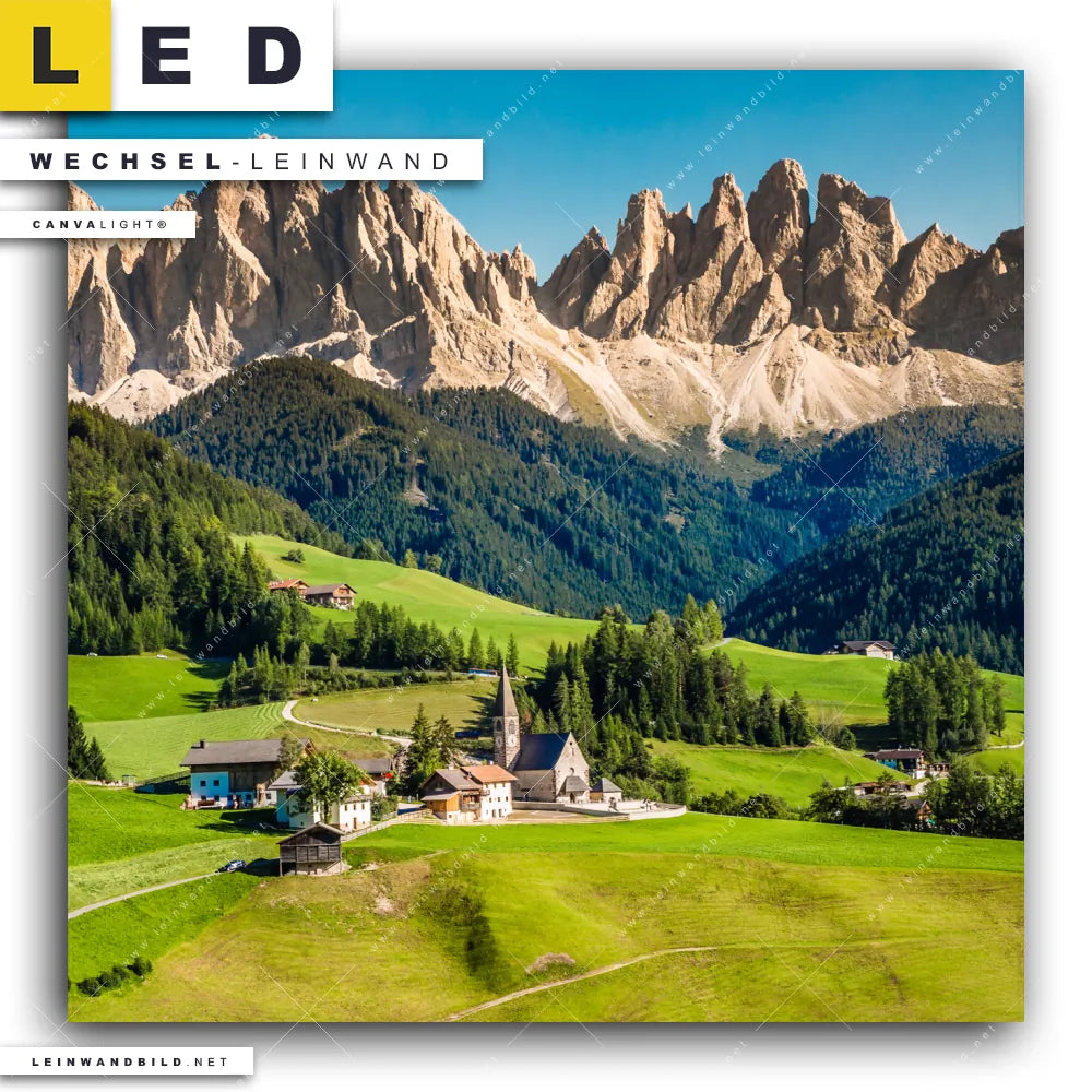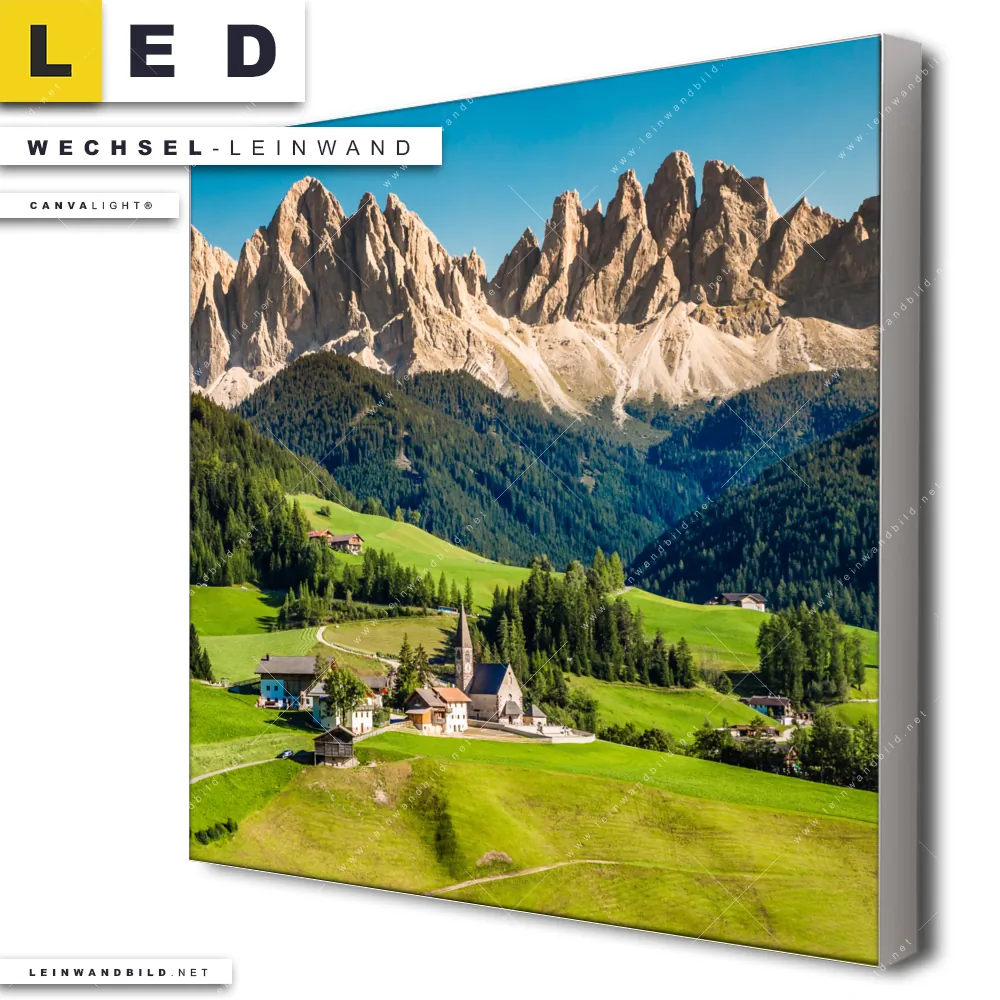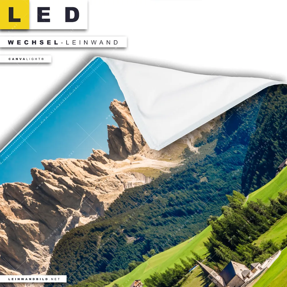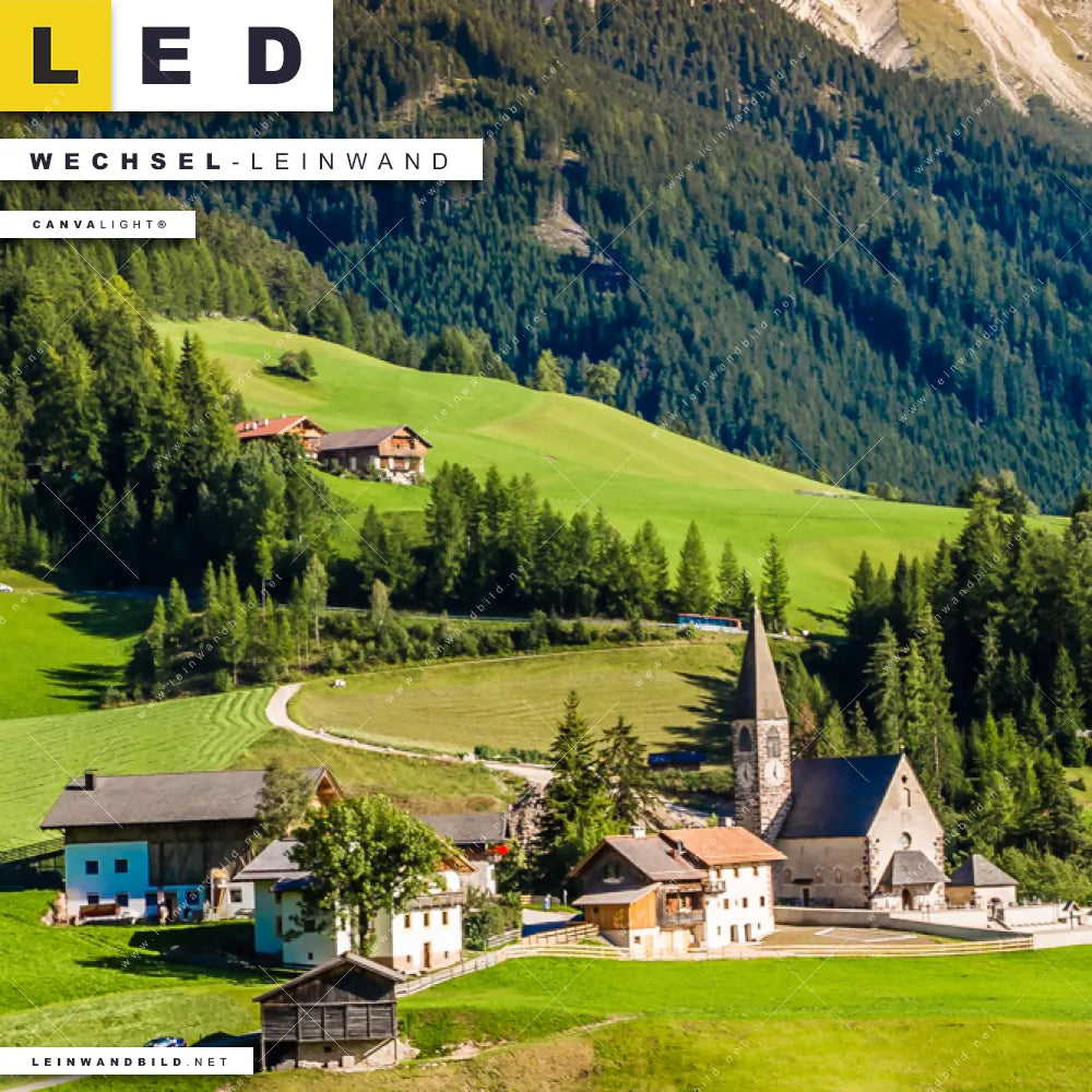 Du konfigurierst Deine individuelle LED Wechsel-Leinwand Canvalight® TEX | Idyllisches Dorf in den Bergen | Quadrat und wir produzieren sie NEU für Dich. Unsere Landschaften, Architektur - Gebäude Austausch-Fotoleinwände für Canvalight® LED Bilder sind KEINE Lagerware. Du bist Dir unsicher, welches Motiv oder Format das richtige für dein individuelles LED Wechselmotiv auf Leinwand ist, dann helfen wir dir gerne weiter und beraten dich!