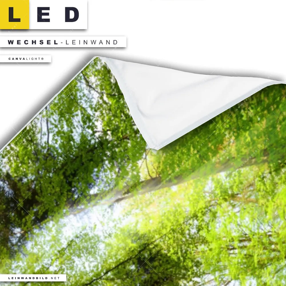Du konfigurierst Deine individuelle LED Wechsel-Leinwand Canvalight® TEX | Im frischen grünen Wald | Panorama und wir produzieren sie NEU für Dich. Unsere Landschaften, Wald - Bäume Austausch-Fotoleinwände für Canvalight® LED Bilder sind KEINE Lagerware. Du bist Dir unsicher, welches Motiv oder Format das richtige für dein individuelles LED Wechselmotiv auf Leinwand ist, dann helfen wir dir gerne weiter und beraten dich!