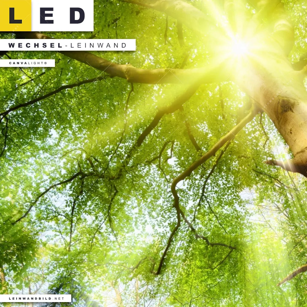 Du bist auf der Suche nach einer Landschaften, Wald - Bäume Wechsel-Leinwand für Dein LED-Leinwandbild im Quadratischen Format? Begriffe wie Wald, Baum, Bäume, Natur, Baumkrone, Froschperspektive, Baumkronen, Laubbaum, Lichtung, Sonnenlicht, Sonnenstrahlen, Sonne, Sonnenschein, Buche, Eiche, Baumstamm, Baumwipfel haben Dich auf der Suche nach Deiner Ersatz-Leinwand für dein LED Wandbild mit wechselbarer Leinwand inspiriert? Farben wie Grün, Hellgrün, Braun dürfen auf Deinem neuen Wechselmotiv für Dein XXL Leinwand-LED-Bild nicht fehlen und Leinwände im Natürlich - Realistisch, Modern Art Stil für Leuchtbilder passen perfekt zu Deinem Einrichtungsstil?