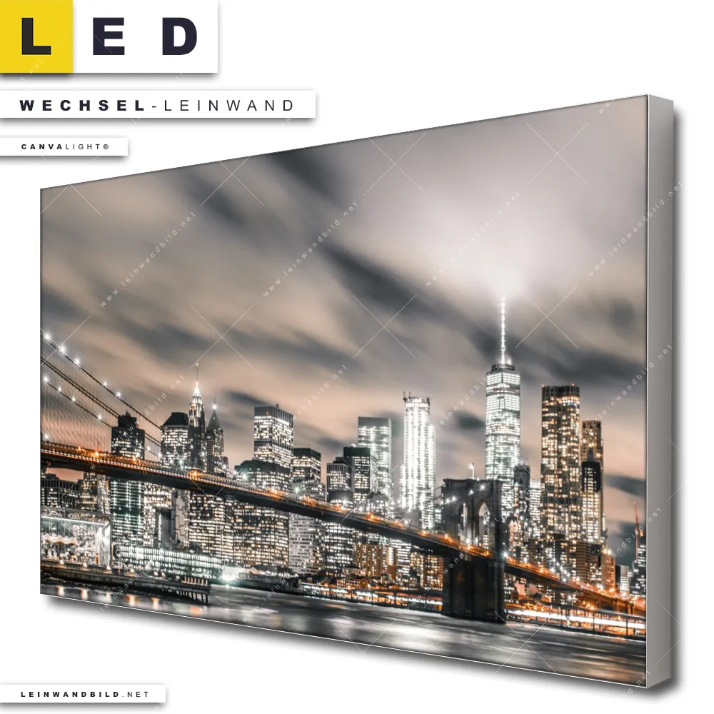 Du bist auf der Suche nach einer Städte - Skylines Wechsel-Leinwand für Dein LED-Leinwandbild im Querformat? Begriffe wie Stadt, Skyline, Himmel, Manhatten, New York, Amerika, Sonnenuntergang, Nacht, Metropole, Abend haben Dich auf der Suche nach Deiner Ersatz-Leinwand für dein breites LED Wandbild mit wechselbarer Leinwand inspiriert? Farben wie Beige, Weiss, Schwarz dürfen auf Deinem neuen Wechselmotiv für Dein XXL Leinwand-LED-Bild nicht fehlen und Leinwände im Modern Art, Natürlich - Realistisch, Schwarz - Weiss Stil für Leuchtbilder passen perfekt zu Deinem Einrichtungsstil?