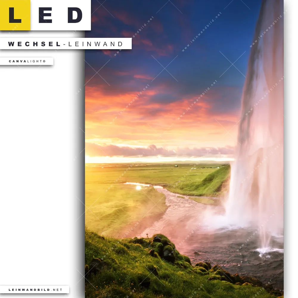 LED Wechsel-Leinwand Canvalight® TEX | Isländischer Wasserfall | Hochformat