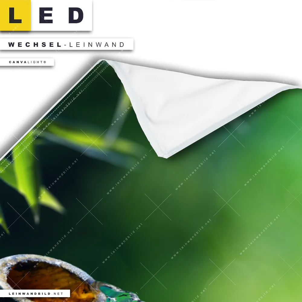 LED Wechsel-Leinwand Canvalight® TEX | Japanischer Brunnen | Hochformat