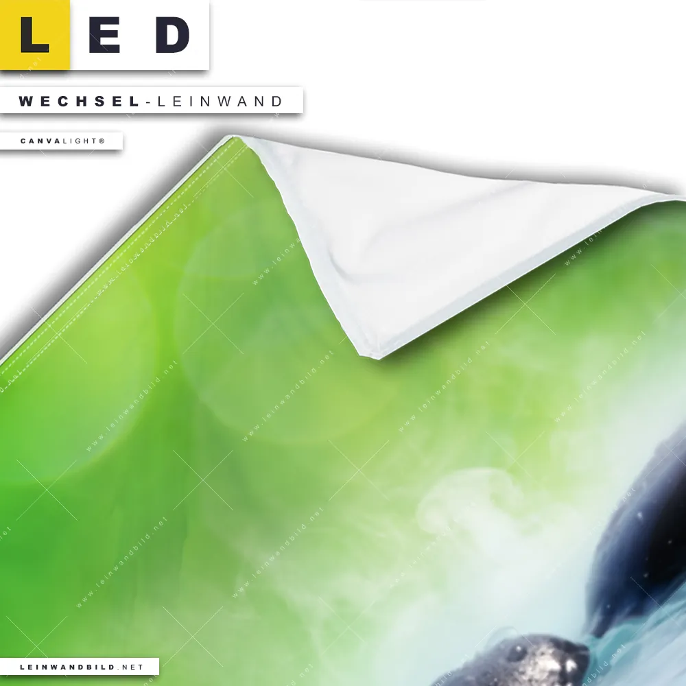 Bitte beachte, dass die Farben, der auf dem Monitor abgebildeten Blüten, Bambus und Zensteine Darstellung, möglicherweise von den Originalfarben deiner Canvalight® TEX Wechsel-Leinwand abweichen können.