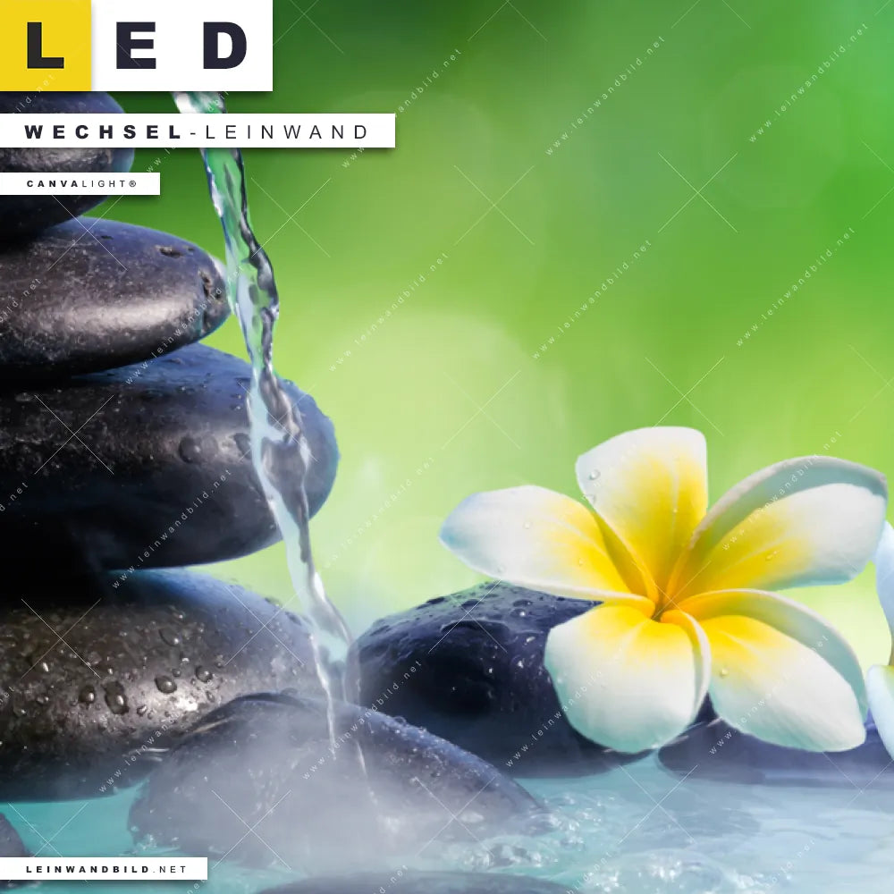 Dann sollte die Wechsel-Leinwand Canvalight® TEX | Japanischer Brunnen | Panorama den Weg zu Dir finden. Die Austausch-Leinwand fließendes Wasser mit Zen-Elementen - passend für unsere stufenlos dimmbaren, steckerfertigen Leinwandbilder im LED Leuchtrahmen mit Fernbedienung und optionaler Farbtemperatursteuerung - fügt sich als Eye-Catcher harmonisch in jedes Arzt - Praxis, Wohnzimmer - Schlafzimmer, Friseur - Beauty Raumkonzept ein.