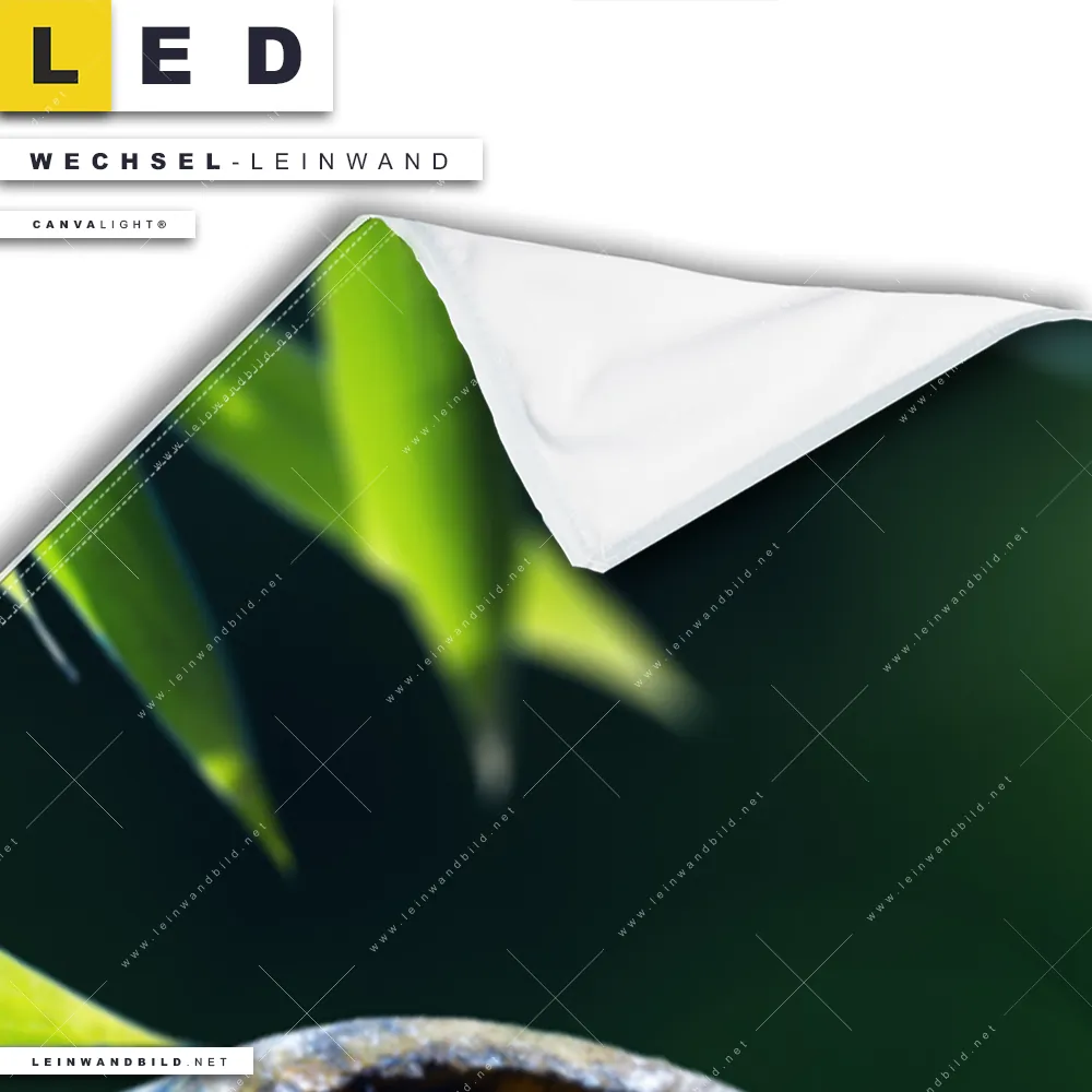Du bist auf der Suche nach einer Buddha - Feng Shui, Blumen - Botanik Wechsel-Leinwand für Dein LED-Leinwandbild im Schmalen Format? Begriffe wie Buddhismus, Religion, Feng Shui, Zen, Meditation, Bambus, Zengarten, Steine, Zensteine, Blumen, Blüte, Lilie, Brunnen, Wasser haben Dich auf der Suche nach Deiner Ersatz-Leinwand für dein LED Wandbild im Panorama-Hochformat mit wechselbarer Leinwand inspiriert? Farben wie Grün, Hellgrün, Türkis, Schwarz, Weiss dürfen auf Deinem neuen Wechselmotiv für Dein XXL Leinwand-LED-Bild nicht fehlen und Leinwände im Mixed Media, Modern Art, Floral Stil für Leuchtbilder passen perfekt zu Deinem Einrichtungsstil?