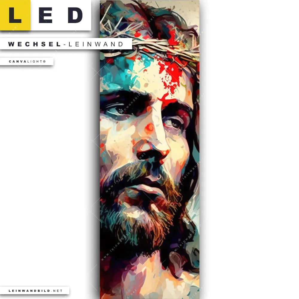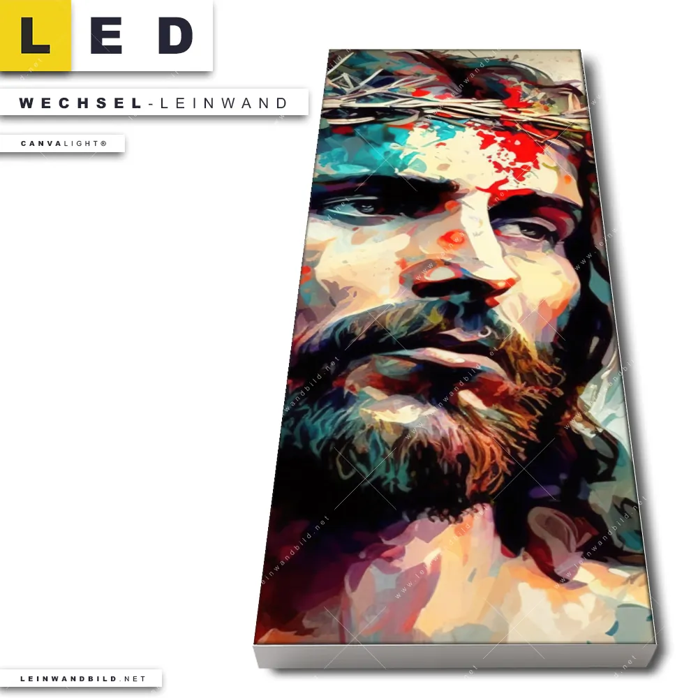 LED Wechsel-Leinwand Canvalight® TEX | Jesus Christus mit Dornenkrone | Schmal