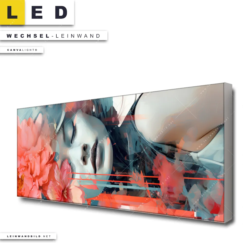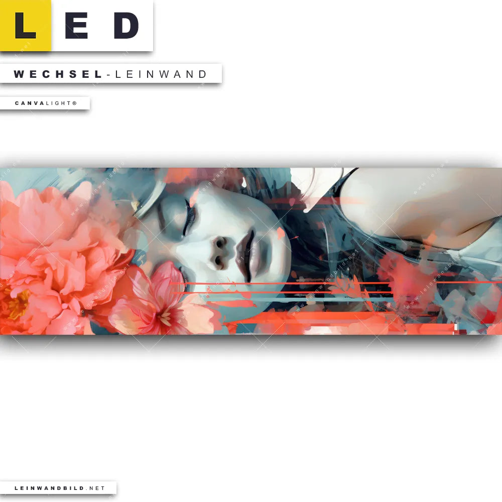LED Wechsel-Leinwand Canvalight® TEX | Jolanda - Frau mit Blumen im Haar | Panorama