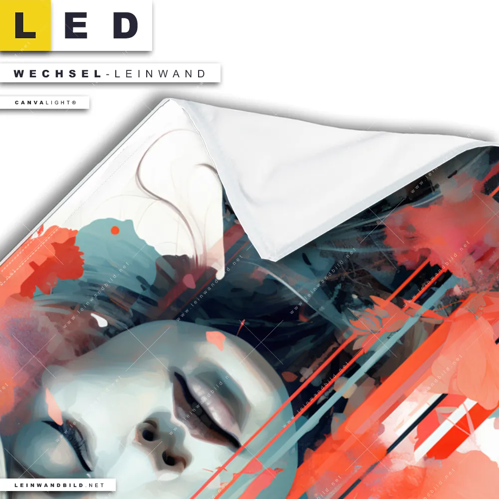 Du bist auf der Suche nach einer Porträts - Menschen, Blumen - Botanik Wechsel-Leinwand für Dein LED-Leinwandbild im Querformat? Begriffe wie Menschen & Blumen, Frau, Porträt, Gesicht, Blumen, Blüten, Frisur, Haare haben Dich auf der Suche nach Deiner Ersatz-Leinwand für dein breites LED Wandbild mit wechselbarer Leinwand inspiriert? Farben wie Rot, Blau, Rosa, Grau dürfen auf Deinem neuen Wechselmotiv für Dein XXL Leinwand-LED-Bild nicht fehlen und Leinwände im Modern Art, Floral Stil für Leuchtbilder passen perfekt zu Deinem Einrichtungsstil?