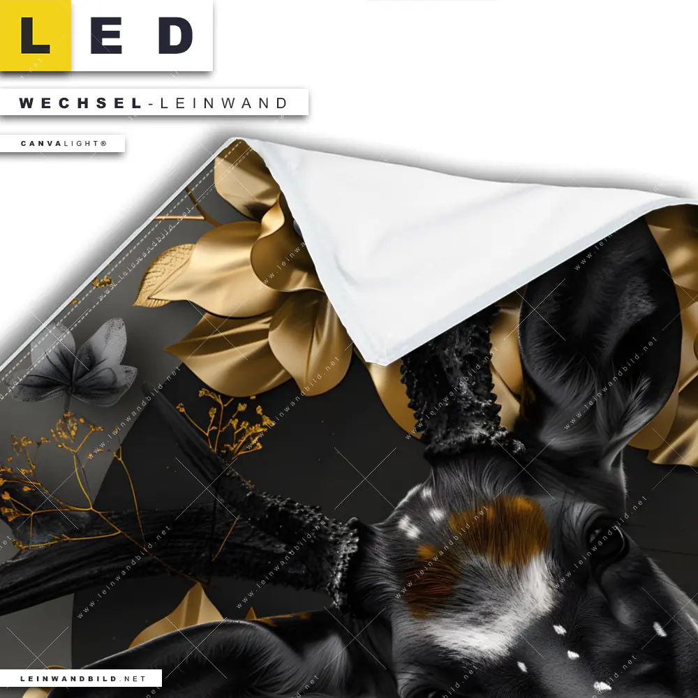 Du konfigurierst Deine individuelle LED Wechsel-Leinwand Canvalight® TEX | Junger Hirsch und Goldblumen | Quadrat und wir produzieren sie NEU für Dich. Unsere Tierwelt, Blumen - Botanik Austausch-Fotoleinwände für Canvalight® LED Bilder sind KEINE Lagerware. Du bist Dir unsicher, welches Motiv oder Format das richtige für dein individuelles LED Wechselmotiv auf Leinwand ist, dann helfen wir dir gerne weiter und beraten dich!