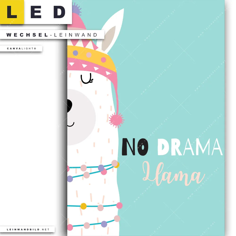Dann sollte die Wechsel-Leinwand Canvalight® TEX | Kein Drama Lama | Hochformat den Weg zu Dir finden. Die Austausch-Leinwand Kein Stress Lama - passend für unsere stufenlos dimmbaren, steckerfertigen Leinwandbilder im Leuchtrahmen mit Fernbedienung und optionaler Farbtemperatursteuerung - fügt sich als Eye-Catcher harmonisch in jedes Kinderzimmer, Friseur - Beauty, Arzt - Praxis Raumkonzept ein.
