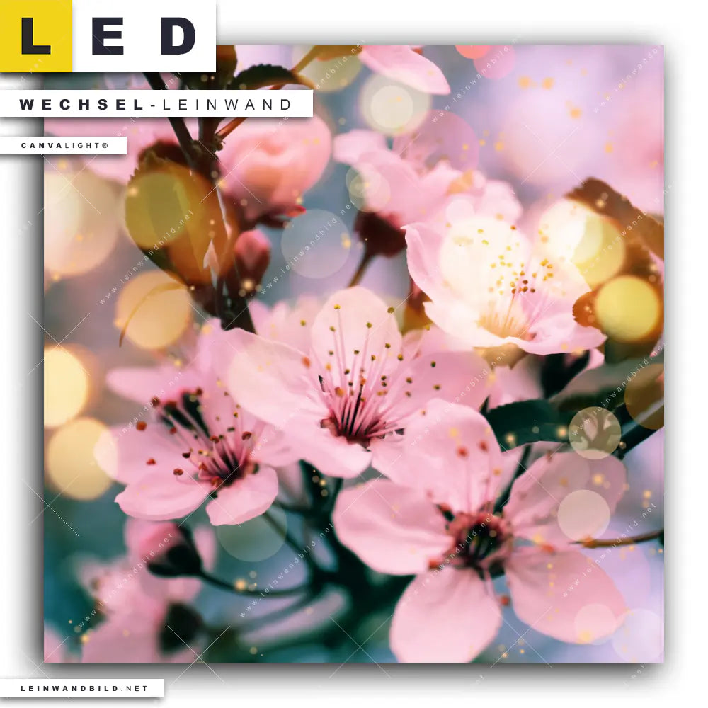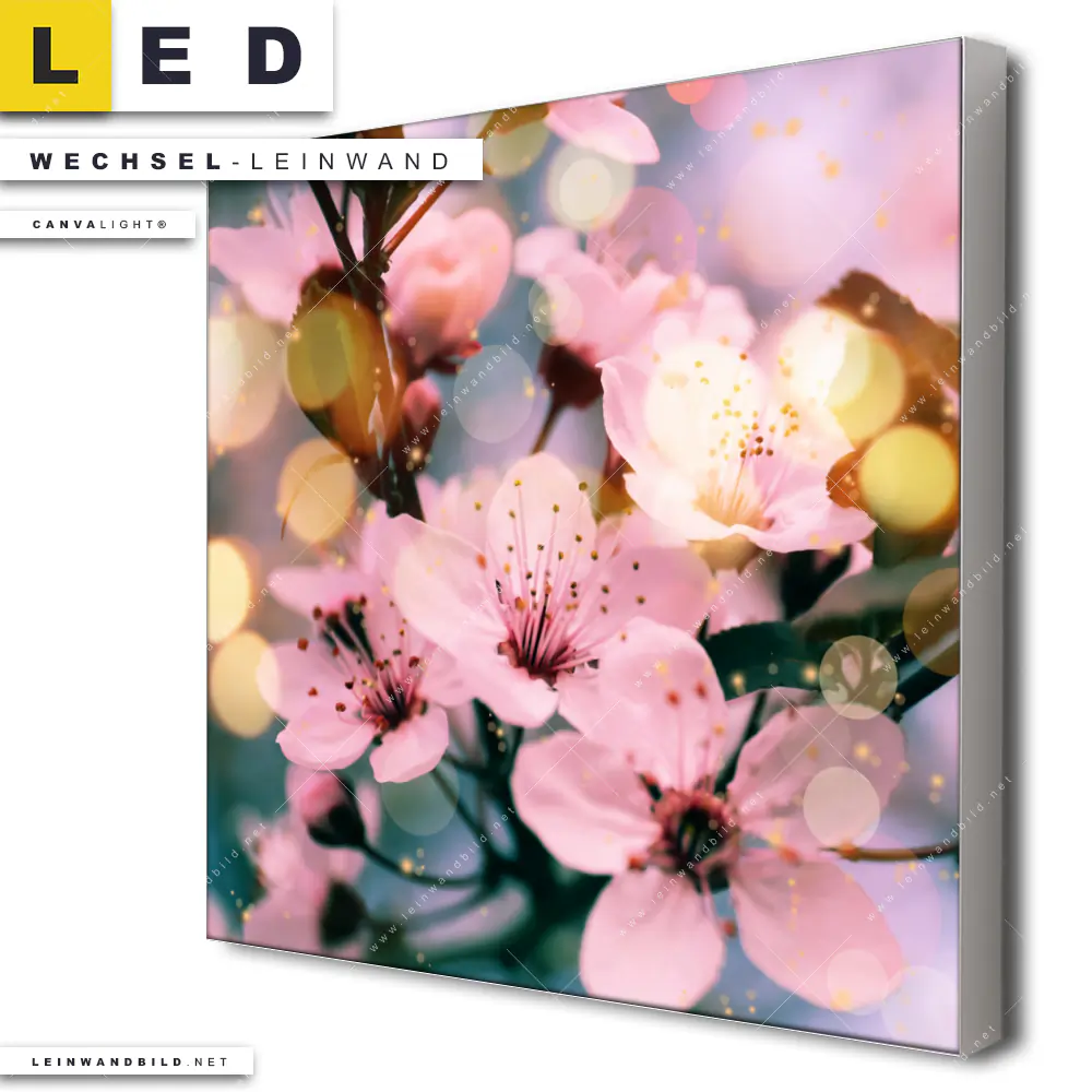 Du bist auf der Suche nach einer Blumen - Botanik Wechsel-Leinwand für Dein LED-Leinwandbild im Quadratischen Format? Begriffe wie Blumen, Kirschblüten, Sakura, Pflanze, Natur, Blüten, Glitzer, Sonnenlicht, Frühling, Kirschbaum haben Dich auf der Suche nach Deiner Ersatz-Leinwand für dein LED Wandbild mit wechselbarer Leinwand inspiriert? Farben wie Weiss, Rosa, Lila, Grün, Gelb dürfen auf Deinem neuen Wechselmotiv für Dein XXL Leinwand-LED-Bild nicht fehlen und Leinwände im Floral, Retro - Vintage Stil für Leuchtbilder passen perfekt zu Deinem Einrichtungsstil?