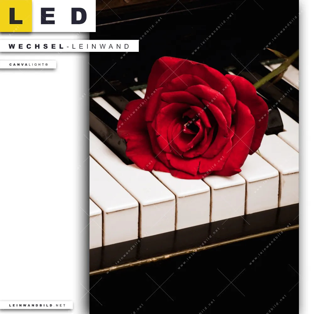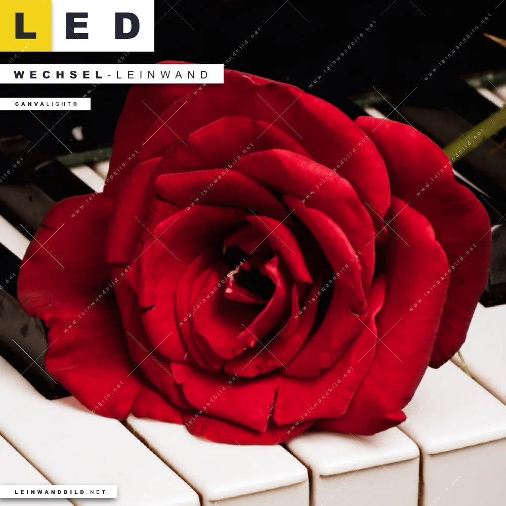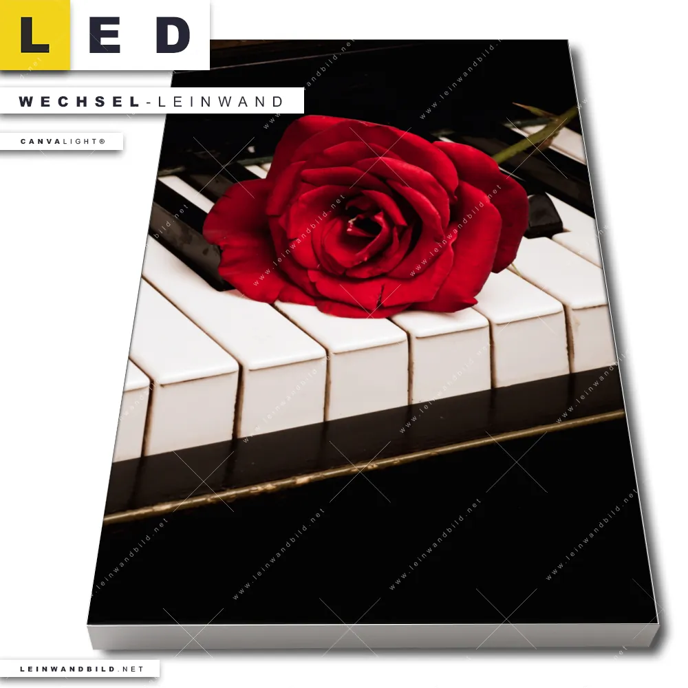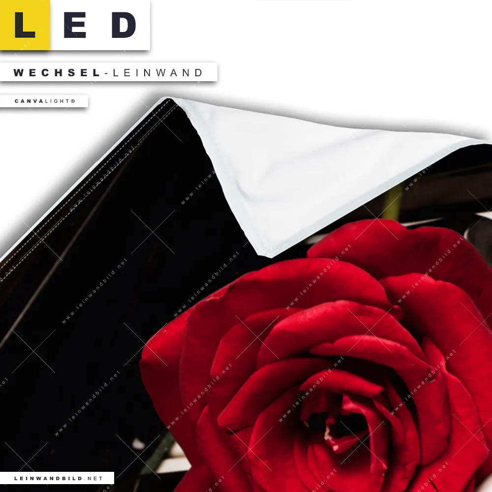 Dann sollte die Wechsel-Leinwand Canvalight® TEX | Klavier & Rose | Hochformat den Weg zu Dir finden. Die Austausch-Leinwand Blume auf Klavier - passend für unsere stufenlos dimmbaren, steckerfertigen Leinwandbilder im Leuchtrahmen mit Fernbedienung und optionaler Farbtemperatursteuerung - fügt sich als Eye-Catcher harmonisch in jedes Bar - Gastronomie, Büro - Kanzlei, Wohnzimmer - Schlafzimmer Raumkonzept ein.