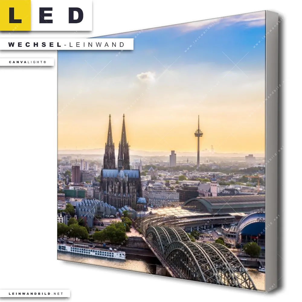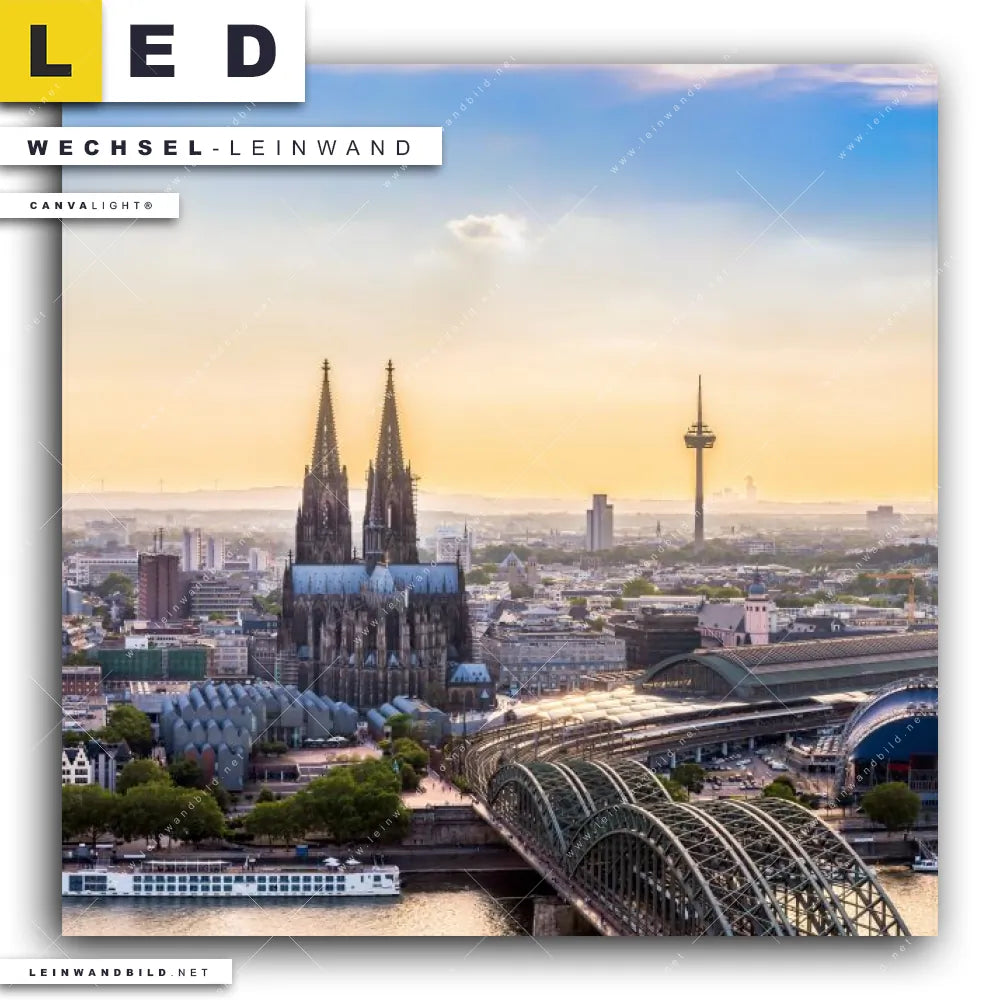 Du bist auf der Suche nach einer Städte - Skylines Wechsel-Leinwand für Dein LED-Leinwandbild im Quadratischen Format? Begriffe wie Sehenswürdigkeiten, Skyline, Häuser, Köln, Deutschland, Rhein, Kölner Dom haben Dich auf der Suche nach Deiner Ersatz-Leinwand für dein LED Wandbild mit wechselbarer Leinwand inspiriert? Farben wie Blau, Beige dürfen auf Deinem neuen Wechselmotiv für Dein XXL Leinwand-LED-Bild nicht fehlen und Leinwände im Natürlich - Realistisch Stil für Leuchtbilder passen perfekt zu Deinem Einrichtungsstil?