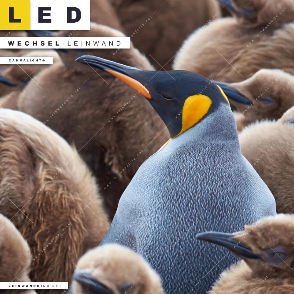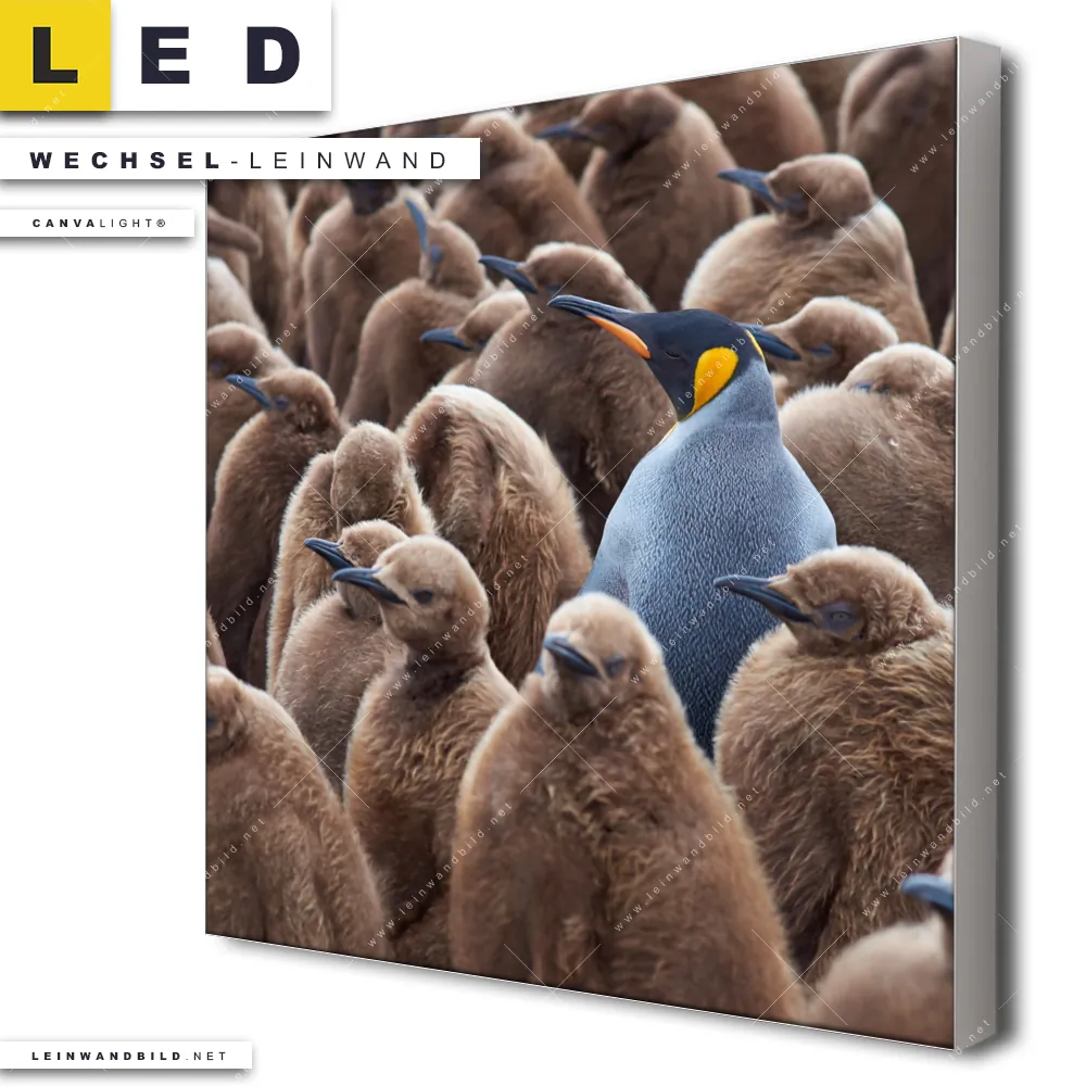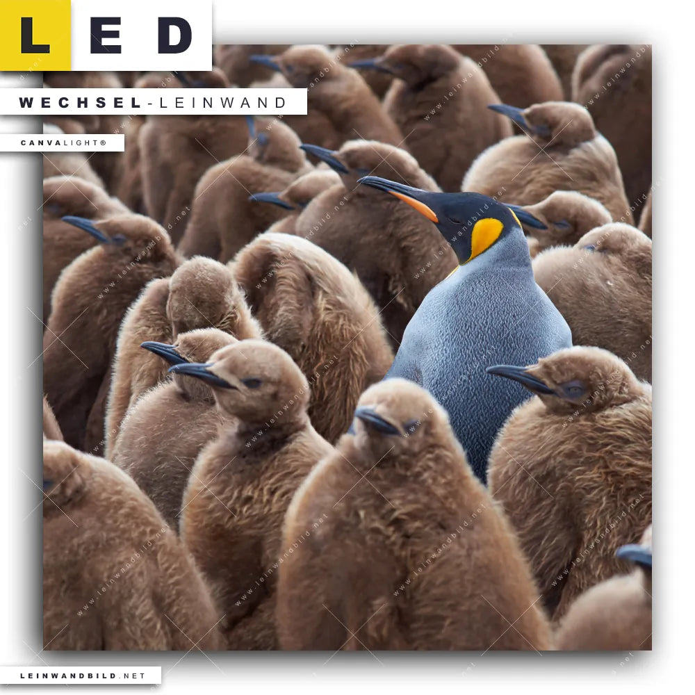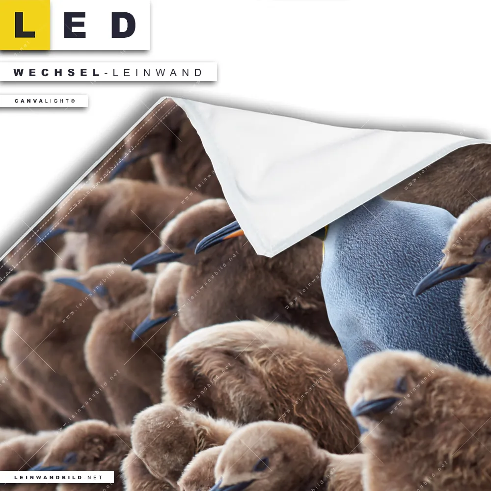 Du bist auf der Suche nach einer Tierwelt Wechsel-Leinwand für Dein LED-Leinwandbild im Quadratischen Format? Begriffe wie Vogel, Pinguin, Wasser, Eis, Königspinguine, Pinguinbabys, Kücken haben Dich auf der Suche nach Deiner Ersatz-Leinwand für dein LED Wandbild mit wechselbarer Leinwand inspiriert? Farben wie Braun dürfen auf Deinem neuen Wechselmotiv für Dein XXL Leinwand-LED-Bild nicht fehlen und Leinwände im Natürlich - Realistisch Stil für Leuchtbilder passen perfekt zu Deinem Einrichtungsstil?