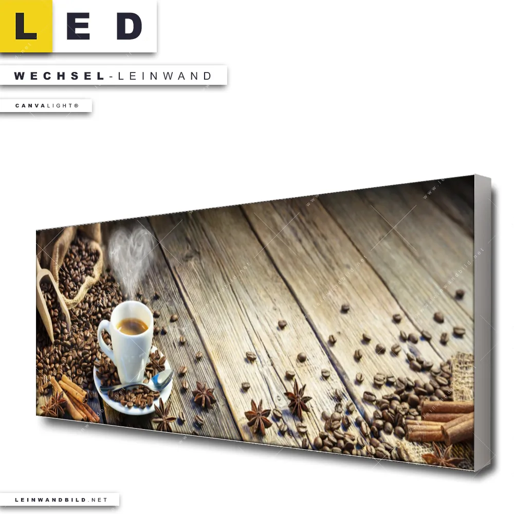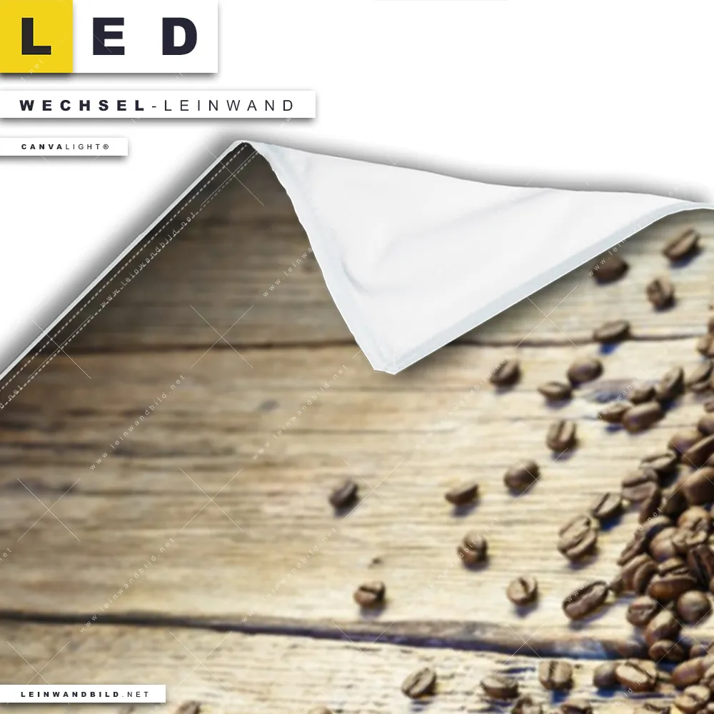 Du bist auf der Suche nach einer Essen - Trinken Wechsel-Leinwand für Dein LED-Leinwandbild im Panorama-Format? Begriffe wie Kaffee, Kaffebohnen, Getränk, Koffein, Aroma haben Dich auf der Suche nach Deiner Ersatz-Leinwand für dein extra breites LED Wandbild mit wechselbarer Leinwand inspiriert? Farben wie Braun, Beige dürfen auf Deinem neuen Wechselmotiv für Dein XXL Leinwand-LED-Bild nicht fehlen und Leinwände im Natürlich - Realistisch Stil für Leuchtbilder passen perfekt zu Deinem Einrichtungsstil?