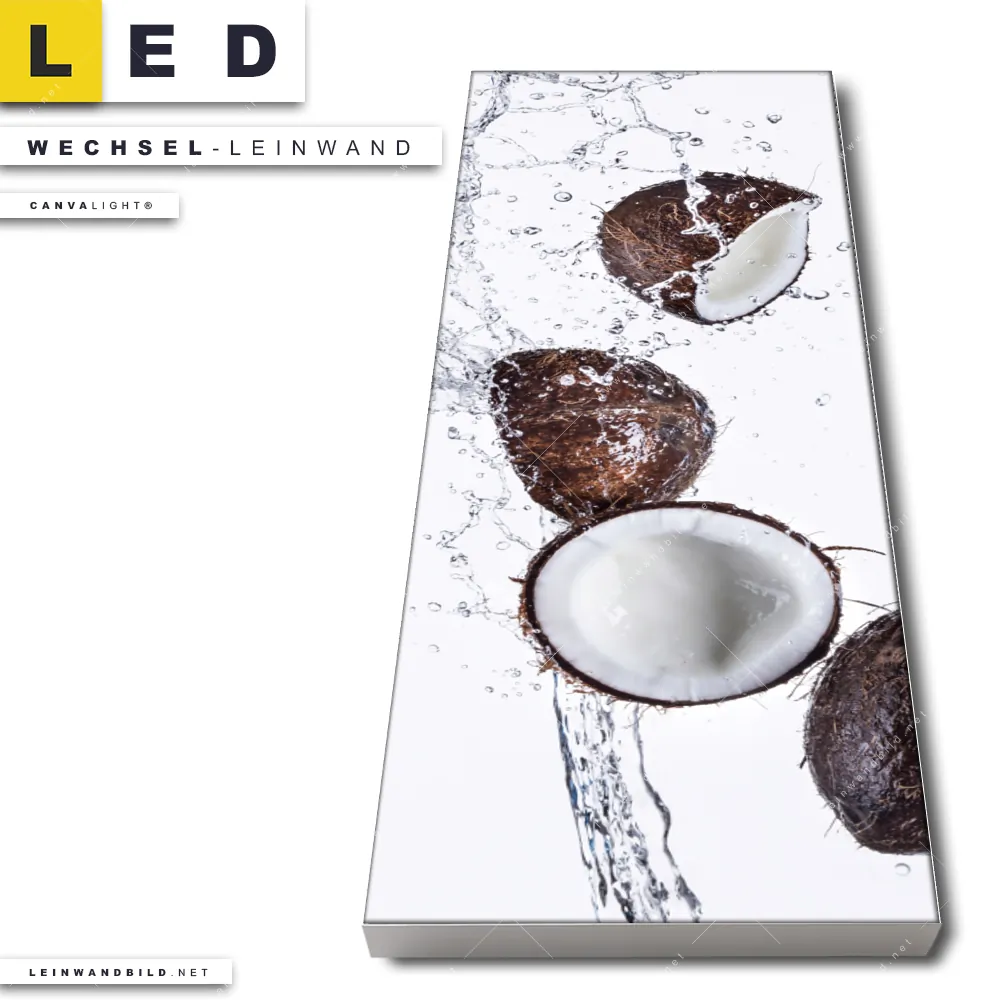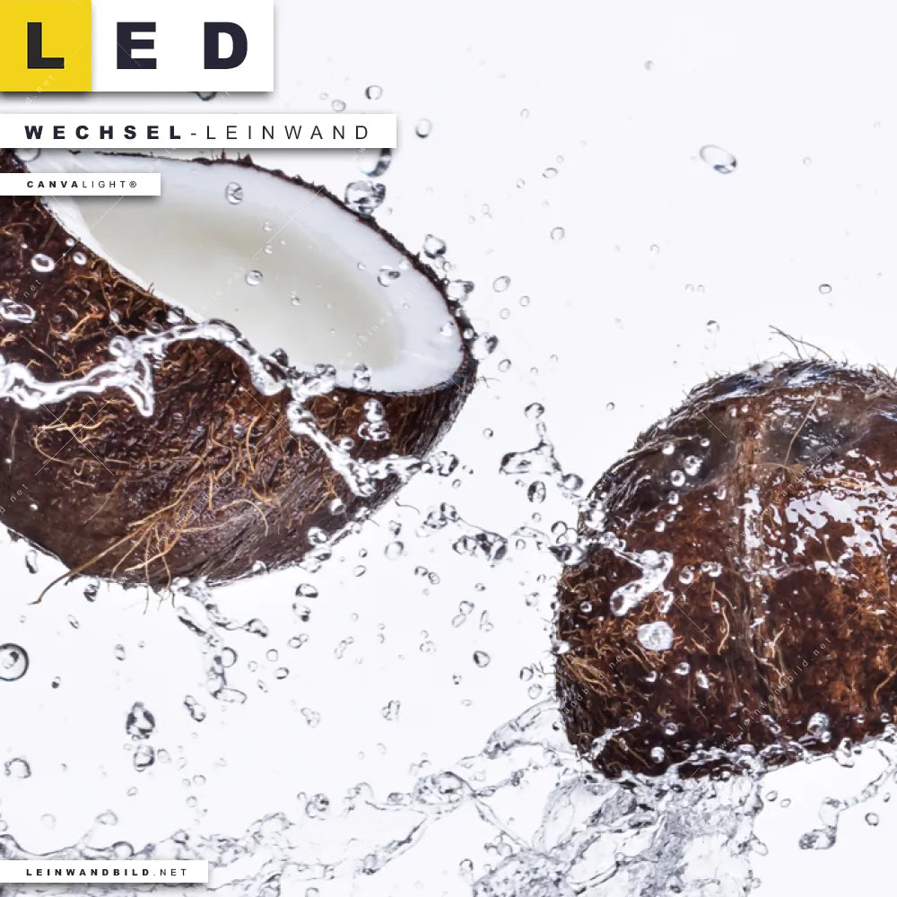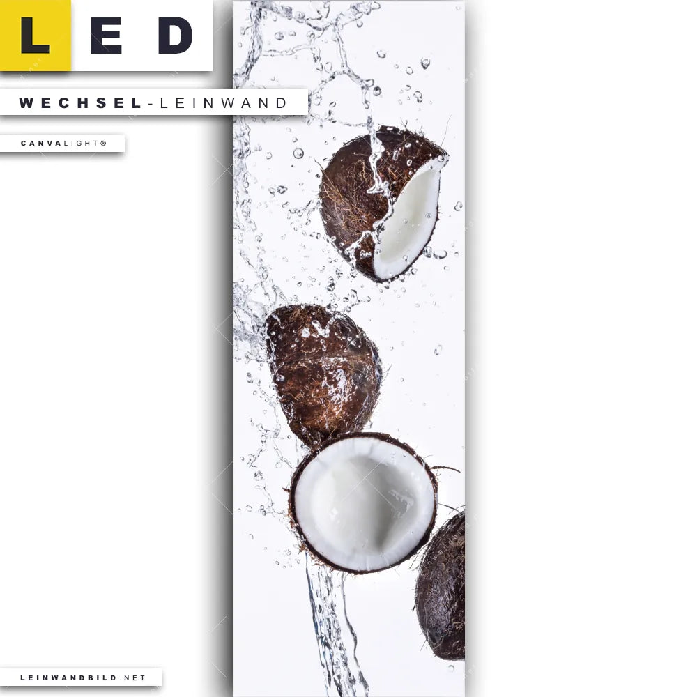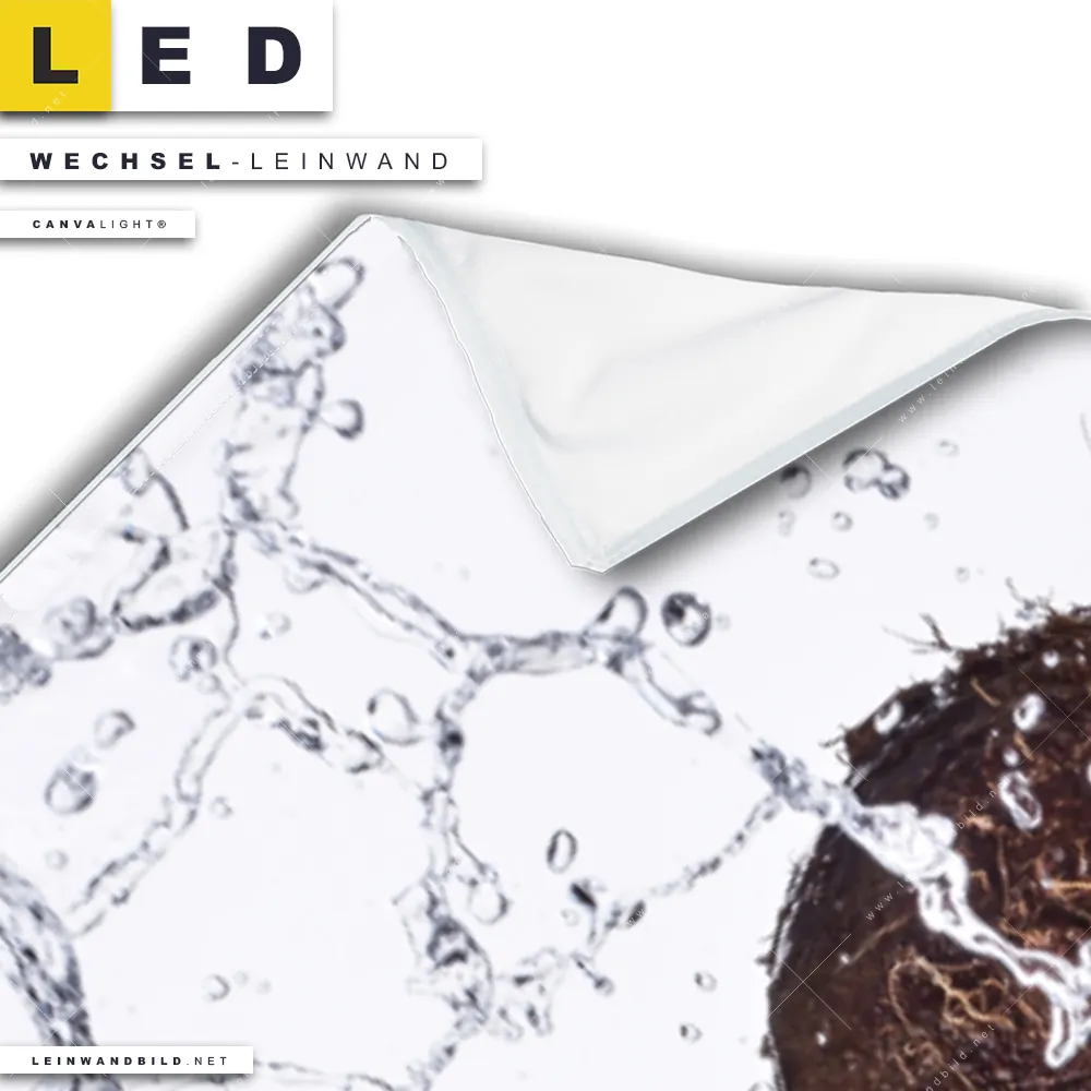 LED Wechsel-Leinwand Canvalight® TEX | Kokosnüsse mit Wasserspritzer | Schmal