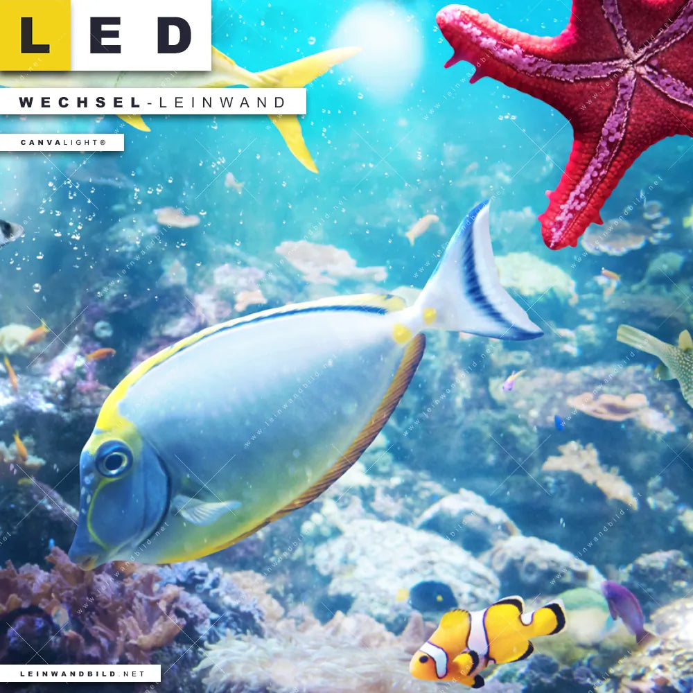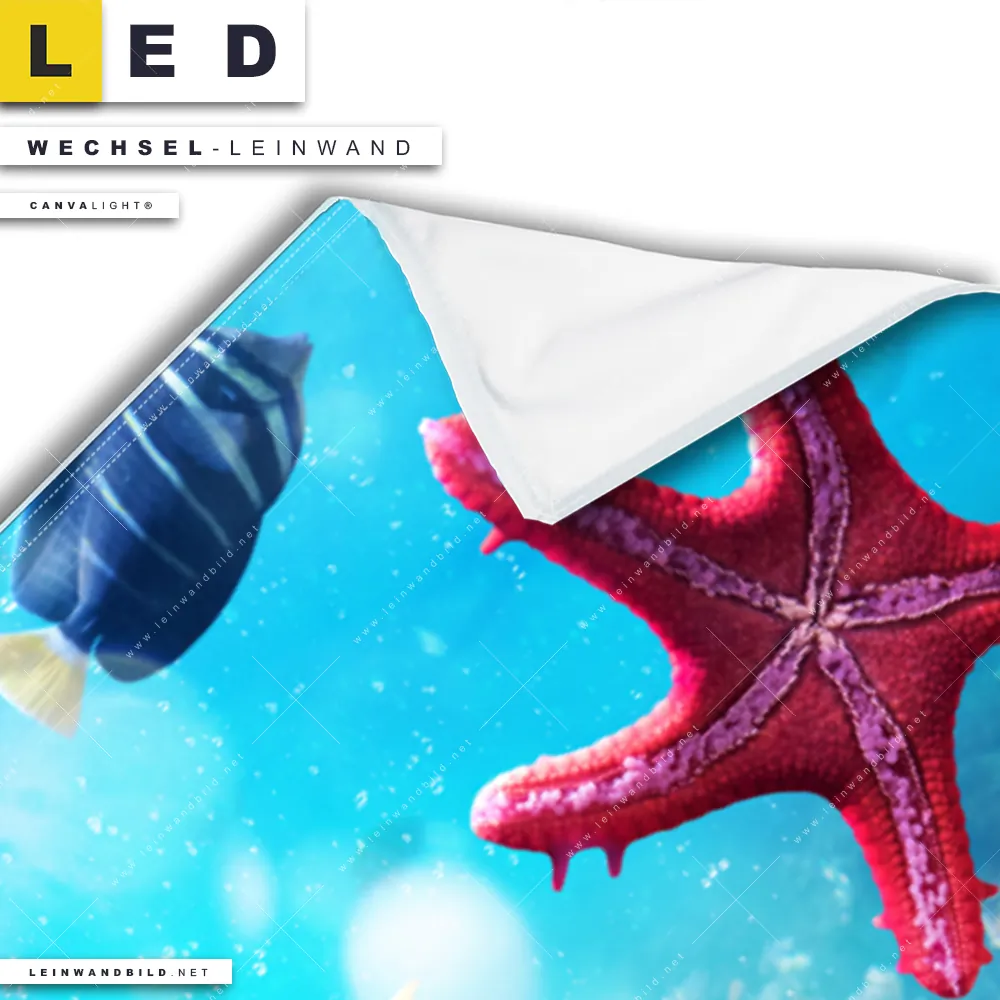 Du konfigurierst Deine individuelle LED Wechsel-Leinwand Canvalight® TEX | Korallenriff im Ozean | Panorama und wir produzieren sie NEU für Dich. Unsere Strand - Meer, Tierwelt Austausch-Fotoleinwände für Canvalight® LED Bilder sind KEINE Lagerware. Du bist Dir unsicher, welches Motiv oder Format das richtige für dein individuelles LED Wechselmotiv auf Leinwand ist, dann helfen wir dir gerne weiter und beraten dich!