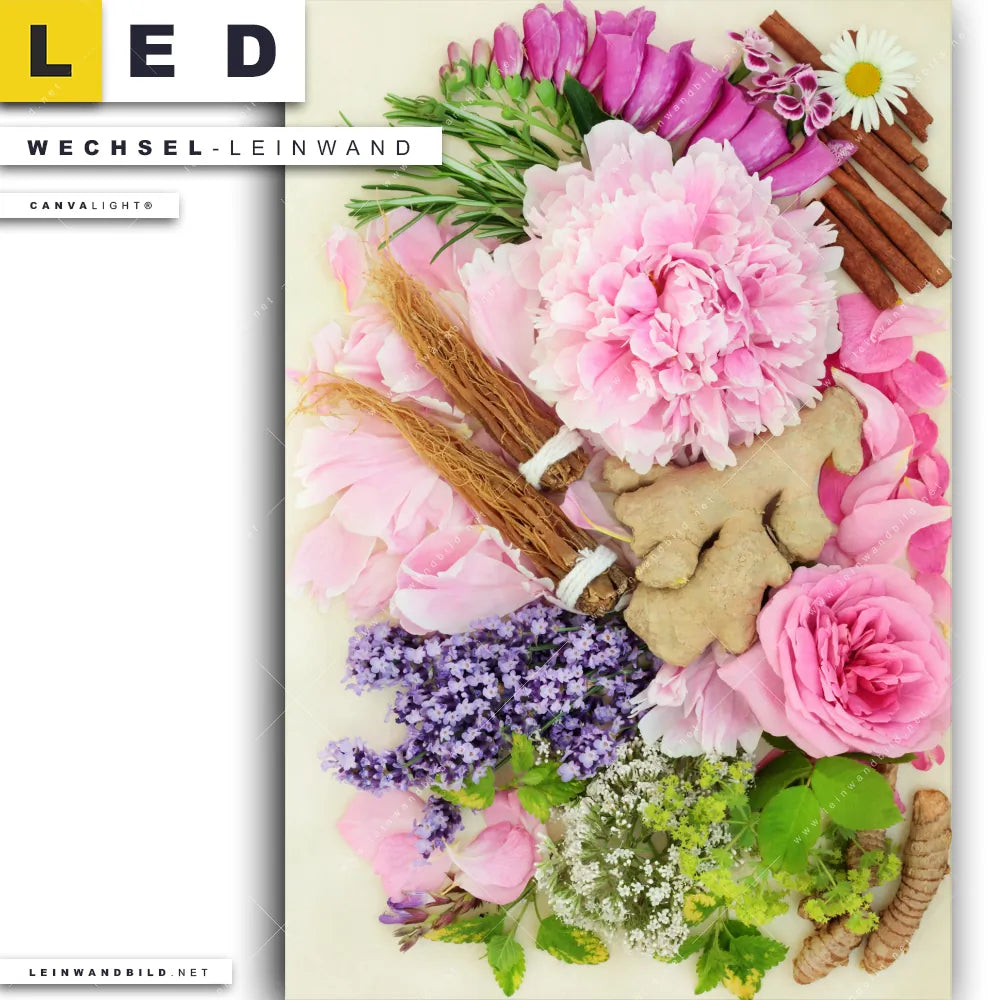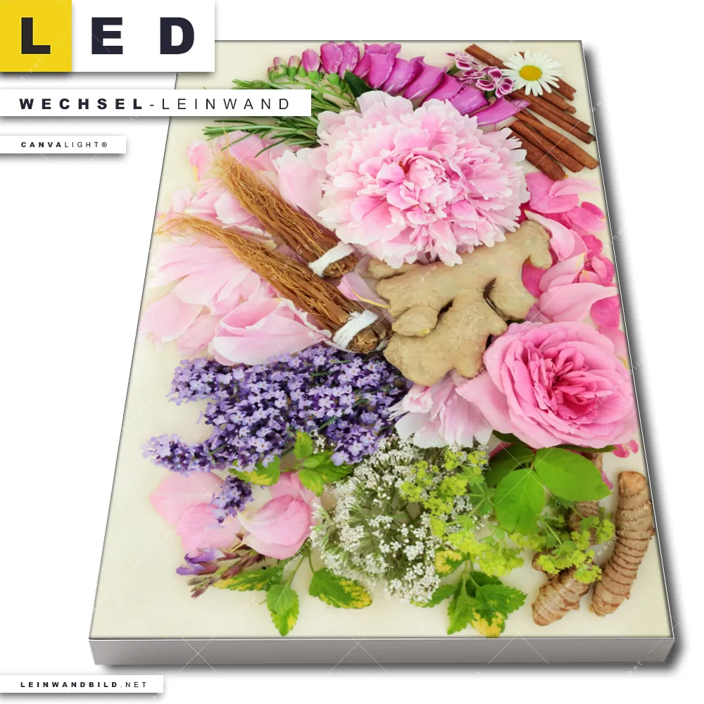 Du bist auf der Suche nach einer Essen - Trinken, Blumen - Botanik Wechsel-Leinwand für Dein LED-Leinwandbild im Hochformat? Begriffe wie Gewürze, Kräuter, kochen, Pfeffer, Salz, Curry, Chili, Blumen, Blüten, Ingwer, Rosen haben Dich auf der Suche nach Deiner Ersatz-Leinwand für dein LED Wandbild mit wechselbarer Leinwand inspiriert? Farben wie Grün, Rosa, Lila, Pink, Braun, Beige dürfen auf Deinem neuen Wechselmotiv für Dein XXL Leinwand-LED-Bild nicht fehlen und Leinwände im Modern Art, Natürlich - Realistisch Stil für Leuchtbilder passen perfekt zu Deinem Einrichtungsstil?