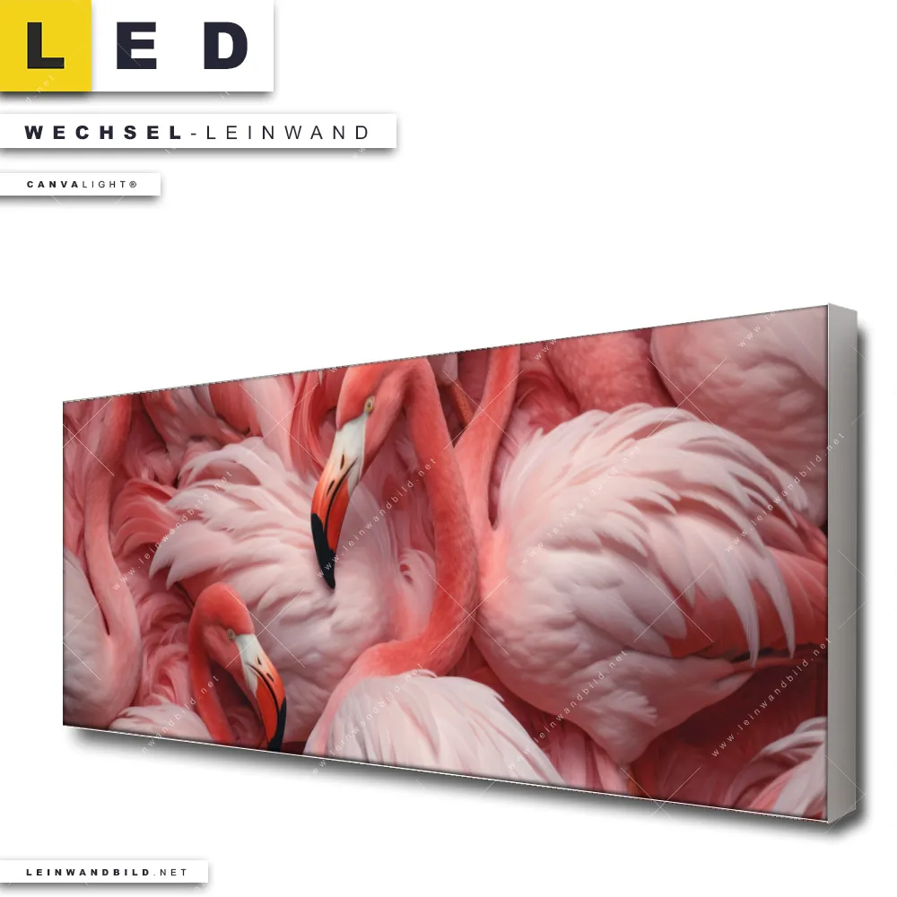 Du bist auf der Suche nach einer Tierwelt Wechsel-Leinwand für Dein LED-Leinwandbild im Panorama-Format? Begriffe wie Vogel, Flamingo, Dschungel, Wasser, Tropen, Blätter, Liebe haben Dich auf der Suche nach Deiner Ersatz-Leinwand für dein extra breites LED Wandbild mit wechselbarer Leinwand inspiriert? Farben wie Rosa, Weiss, Schwarz dürfen auf Deinem neuen Wechselmotiv für Dein XXL Leinwand-LED-Bild nicht fehlen und Leinwände im Modern Art Stil für Leuchtbilder passen perfekt zu Deinem Einrichtungsstil?