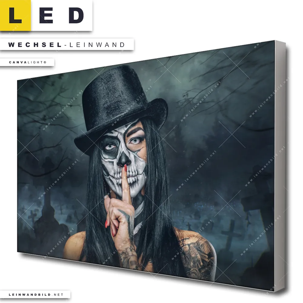 LED Wechsel-Leinwand Canvalight® TEX | La Calavera Catrina | Querformat
