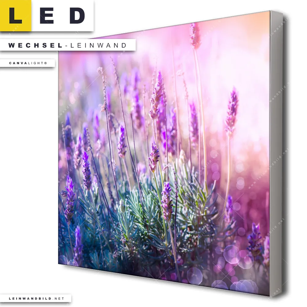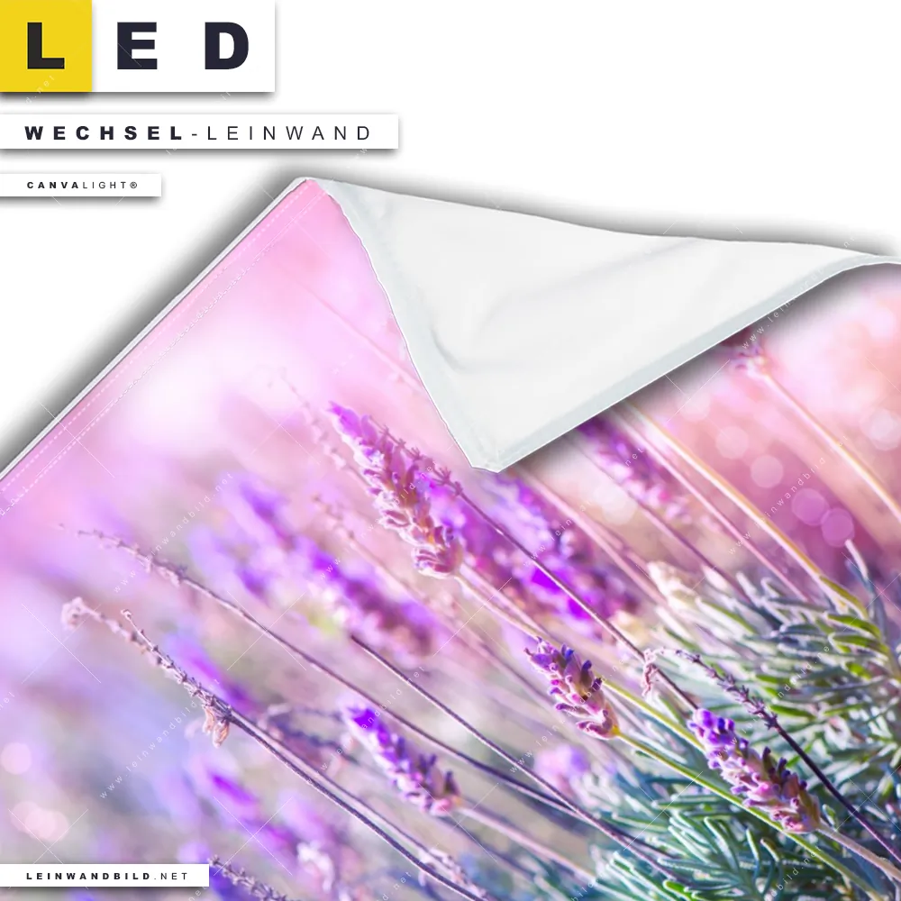 Du konfigurierst Deine individuelle LED Wechsel-Leinwand Canvalight® TEX | Lavendelblütenfeld | Quadrat und wir produzieren sie NEU für Dich. Unsere Blumen - Botanik, Landschaften Austausch-Fotoleinwände für Canvalight® LED Bilder sind KEINE Lagerware. Du bist Dir unsicher, welches Motiv oder Format das richtige für dein individuelles LED Wechselmotiv auf Leinwand ist, dann helfen wir dir gerne weiter und beraten dich!