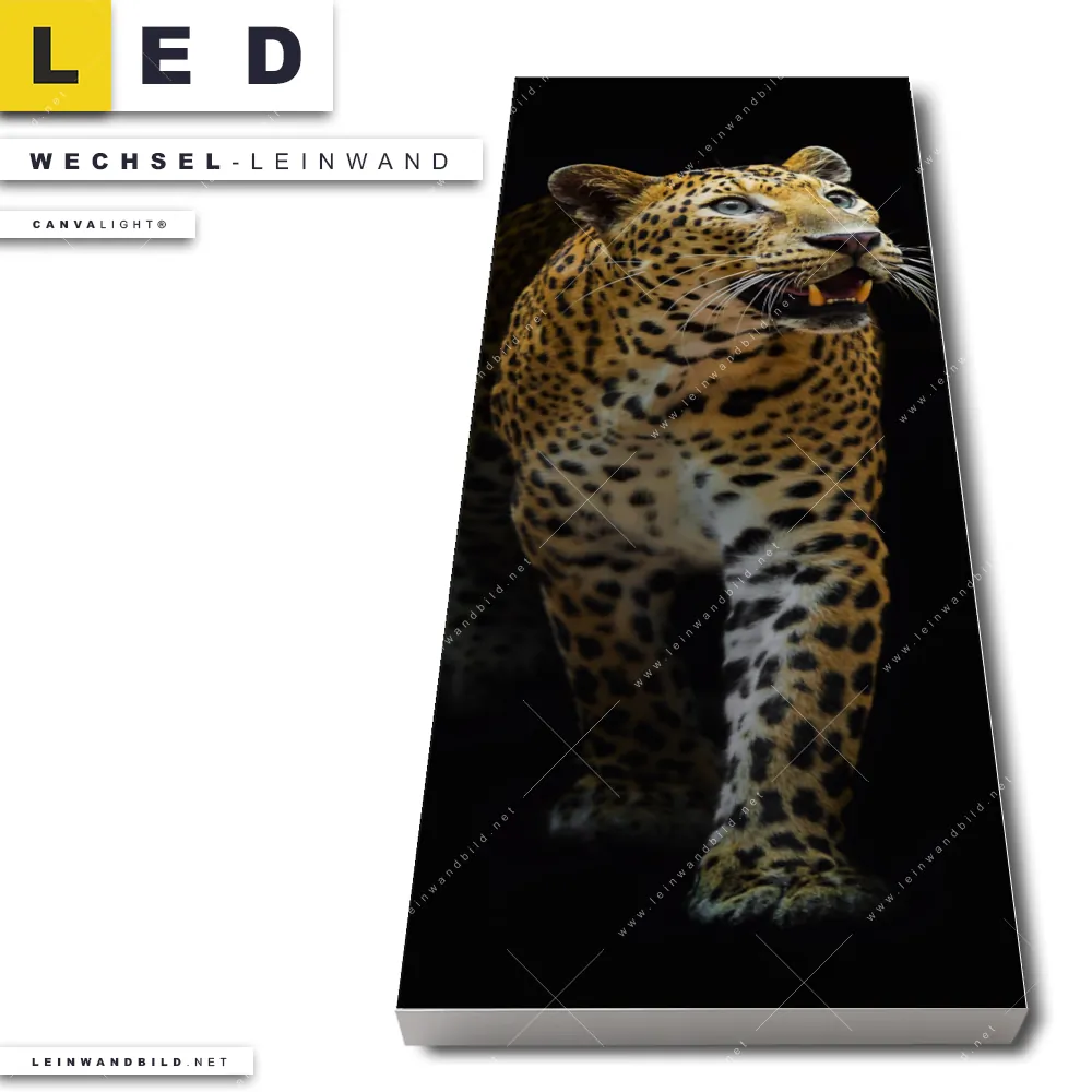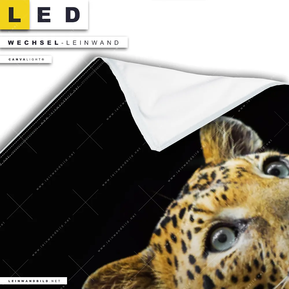 Du bist auf der Suche nach einer Tierwelt Wechsel-Leinwand für Dein LED-Leinwandbild im Schmalen Format? Begriffe wie Raubkatze, Leopard, Afrika, Dschungel, Dunkelheit, Nacht haben Dich auf der Suche nach Deiner Ersatz-Leinwand für dein LED Wandbild im Panorama-Hochformat mit wechselbarer Leinwand inspiriert? Farben wie Schwarz, Beige dürfen auf Deinem neuen Wechselmotiv für Dein XXL Leinwand-LED-Bild nicht fehlen und Leinwände im Natürlich - Realistisch Stil für Leuchtbilder passen perfekt zu Deinem Einrichtungsstil?