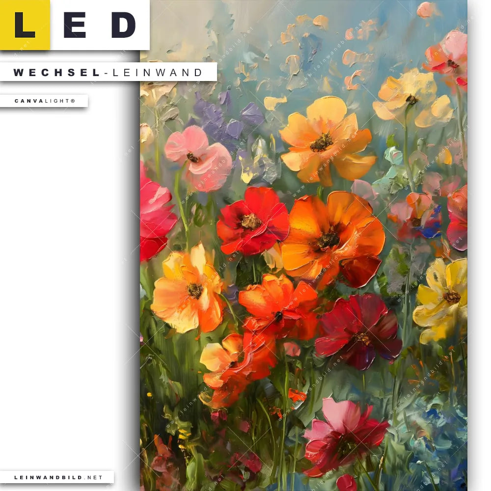 LED Wechsel-Leinwand Canvalight® TEX | Leuchtende Frühlingsblumen | Hochformat