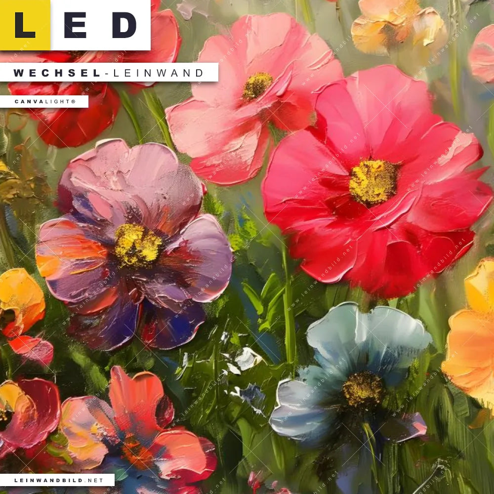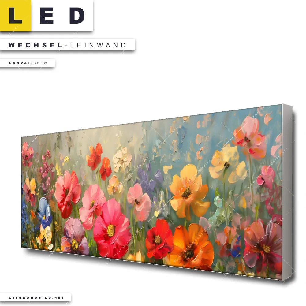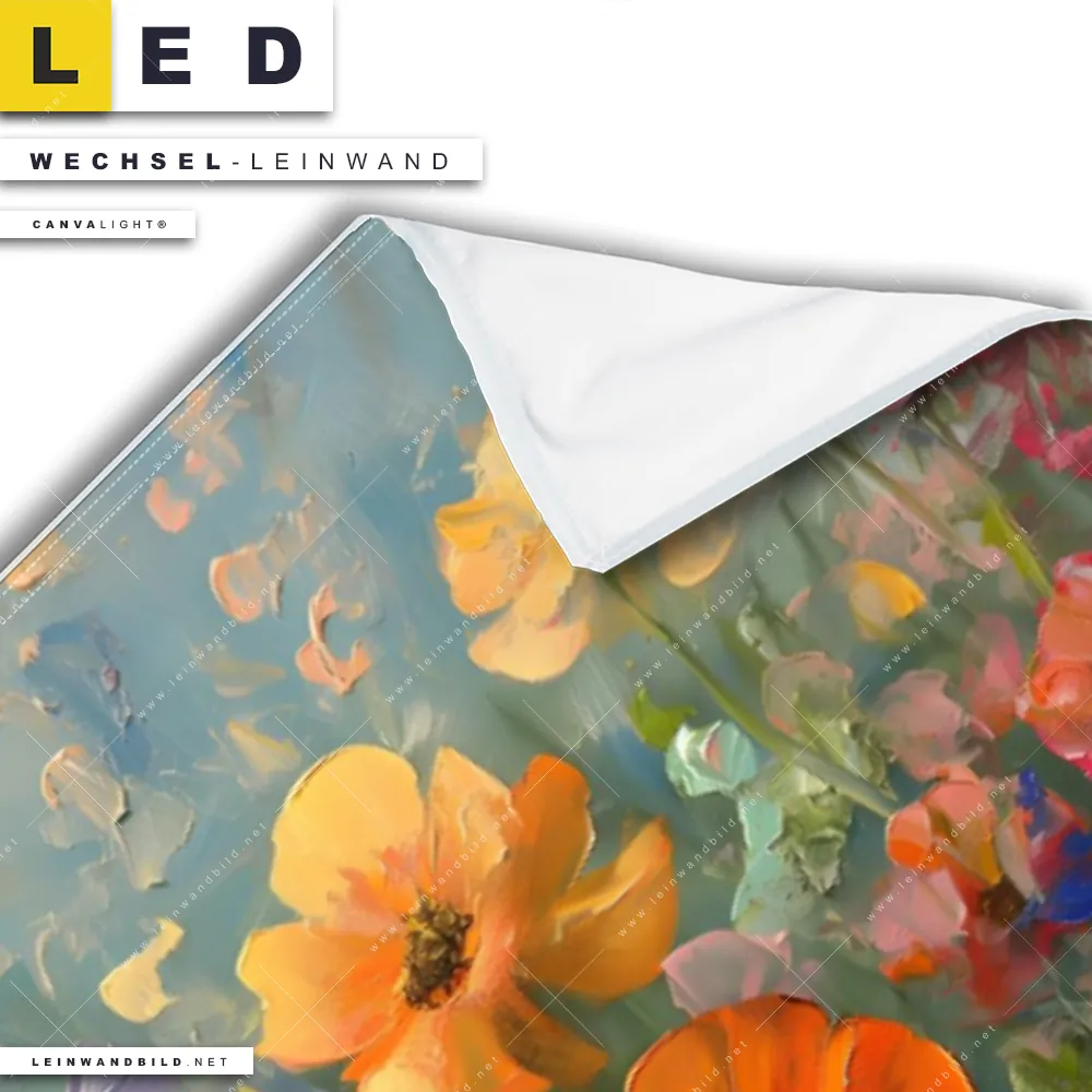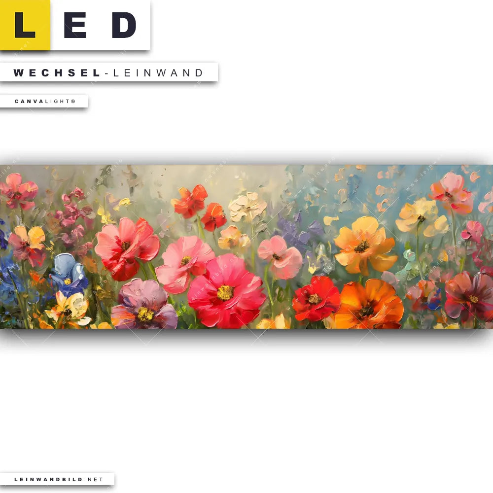 LED Wechsel-Leinwand Canvalight® TEX | Leuchtende Frühlingsblumen | Panorama