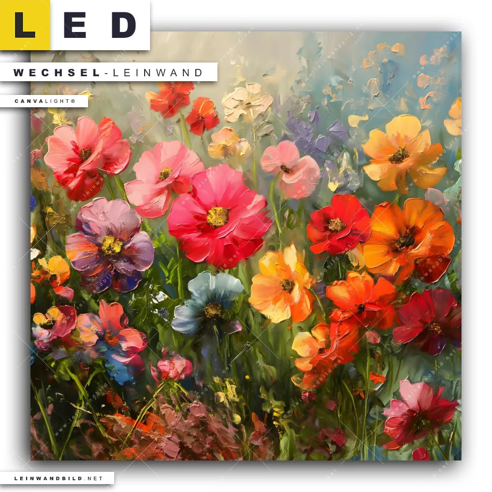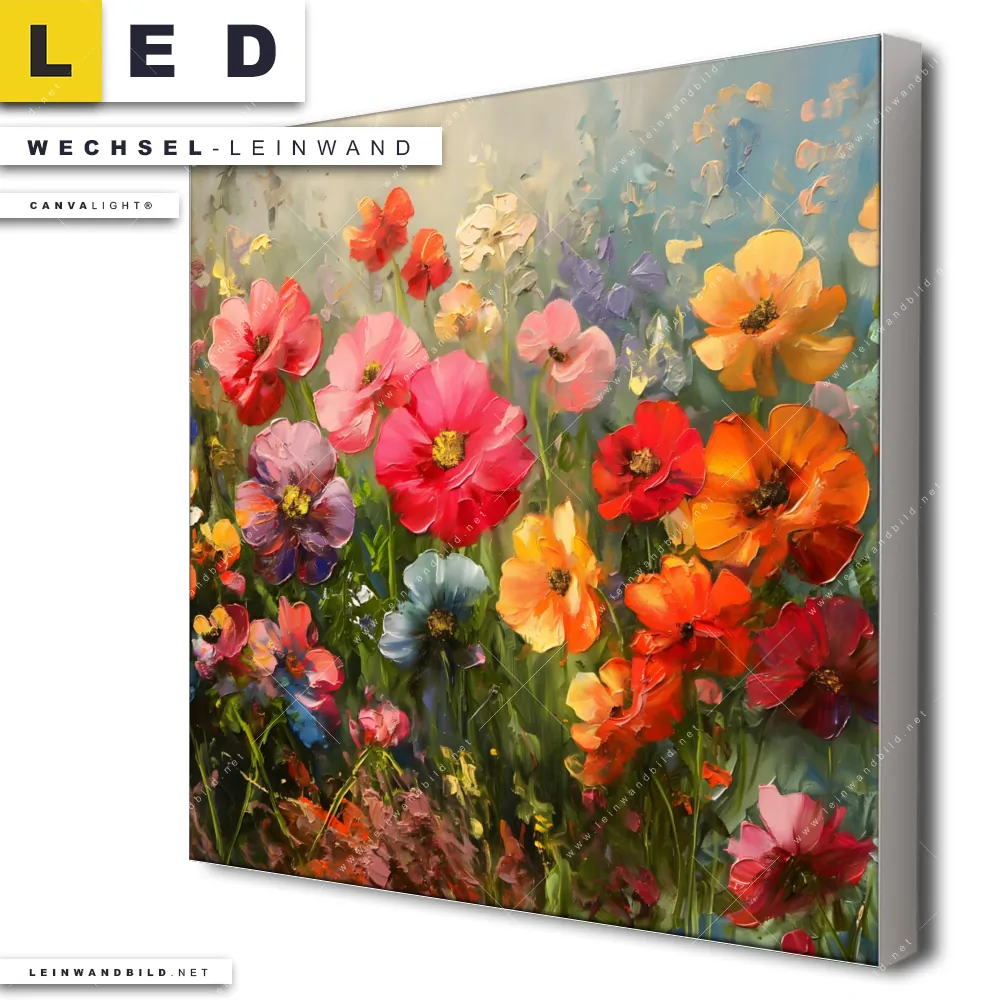 Du bist auf der Suche nach einer Blumen - Botanik Wechsel-Leinwand für Dein LED-Leinwandbild im Quadratischen Format? Begriffe wie Natur, Blüten, Blumen, Blumenwiese, Pflanze haben Dich auf der Suche nach Deiner Ersatz-Leinwand für dein LED Wandbild mit wechselbarer Leinwand inspiriert? Farben wie Blau, Orange, Grün, Gelb dürfen auf Deinem neuen Wechselmotiv für Dein XXL Leinwand-LED-Bild nicht fehlen und Leinwände im Floral, Abstrakt Stil für Leuchtbilder passen perfekt zu Deinem Einrichtungsstil?
