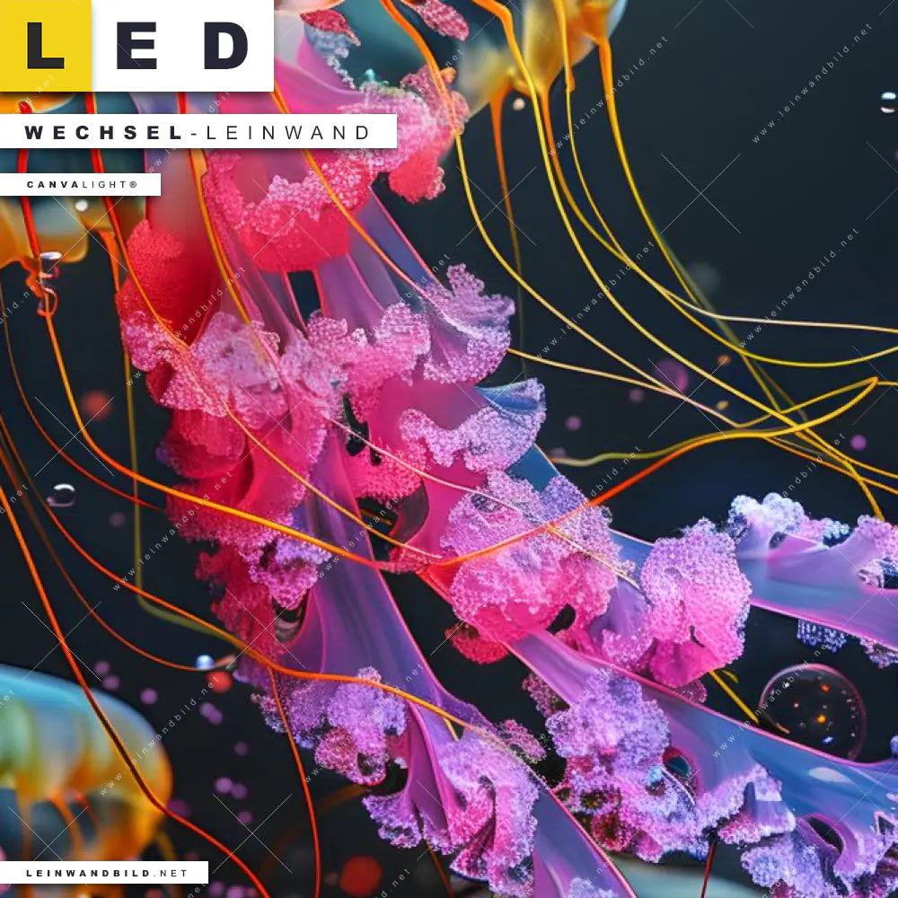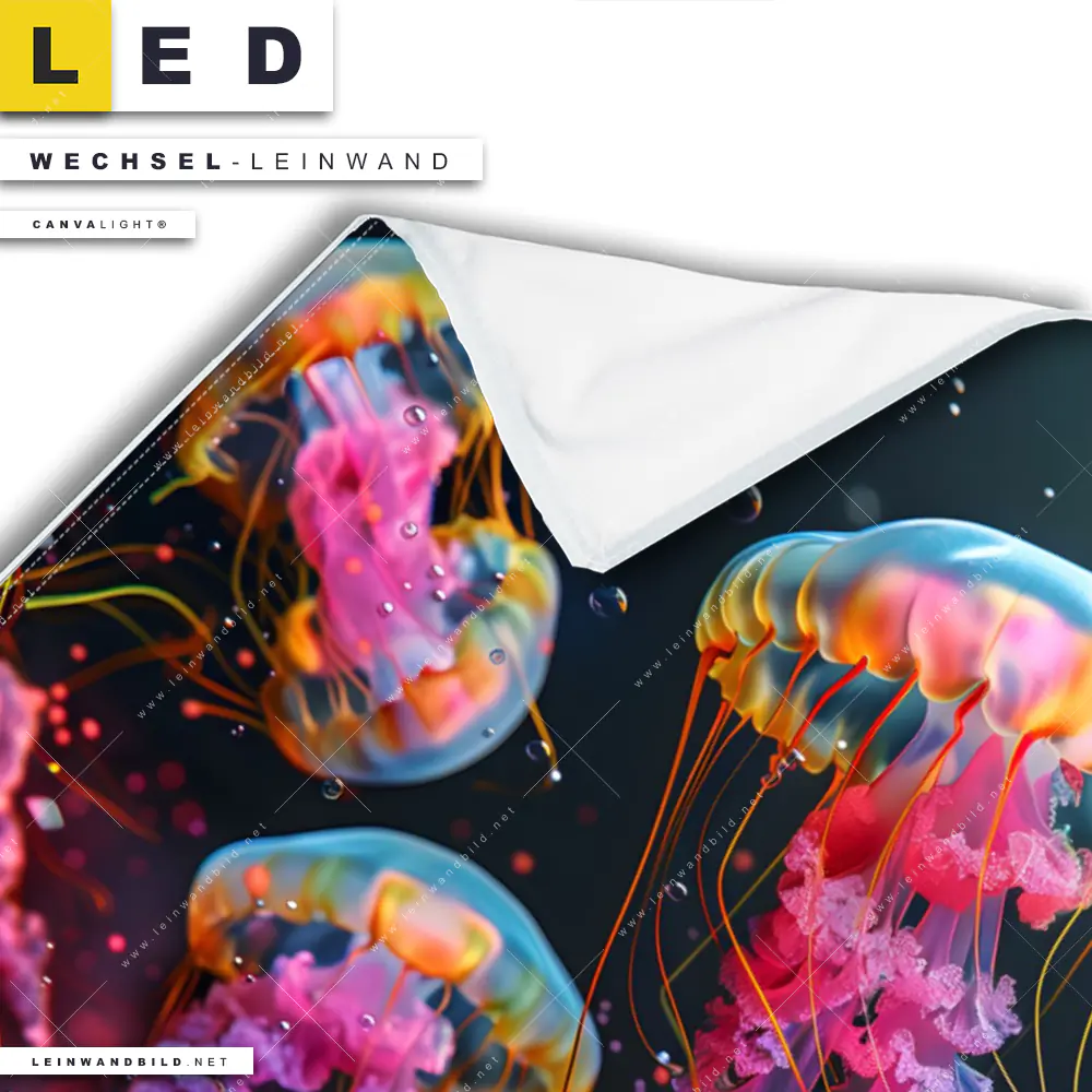 LED Wechsel-Leinwand Canvalight® TEX | Leuchtende Quallen unter Wasser | Hochformat