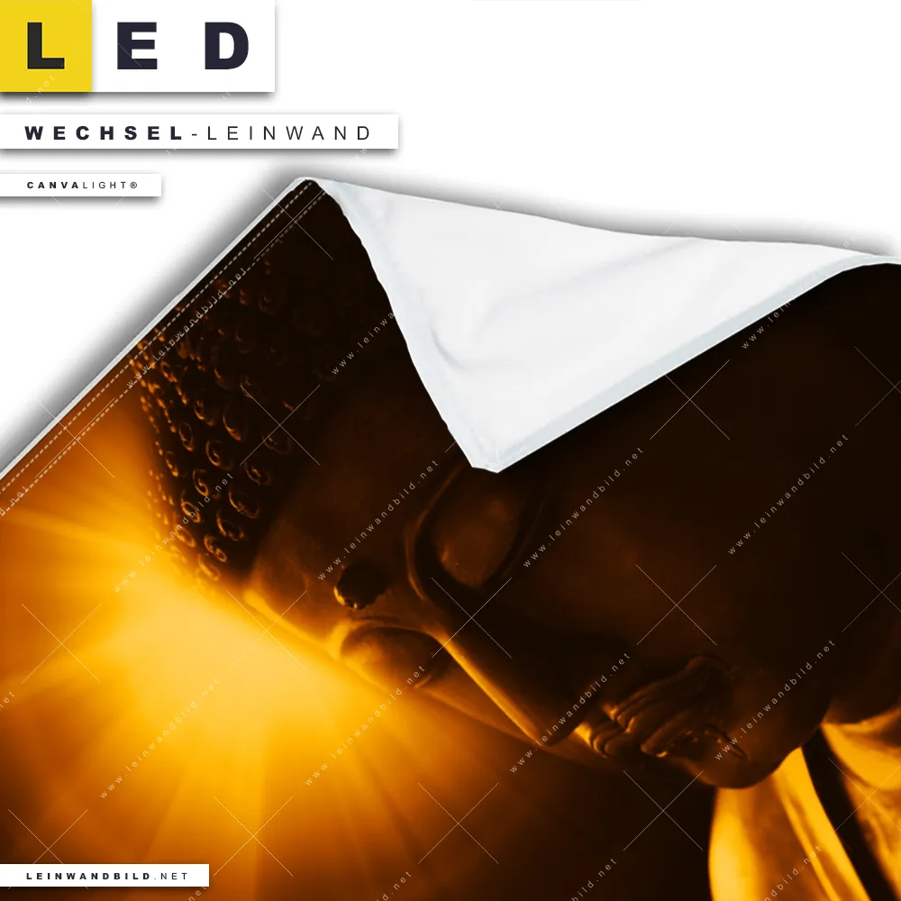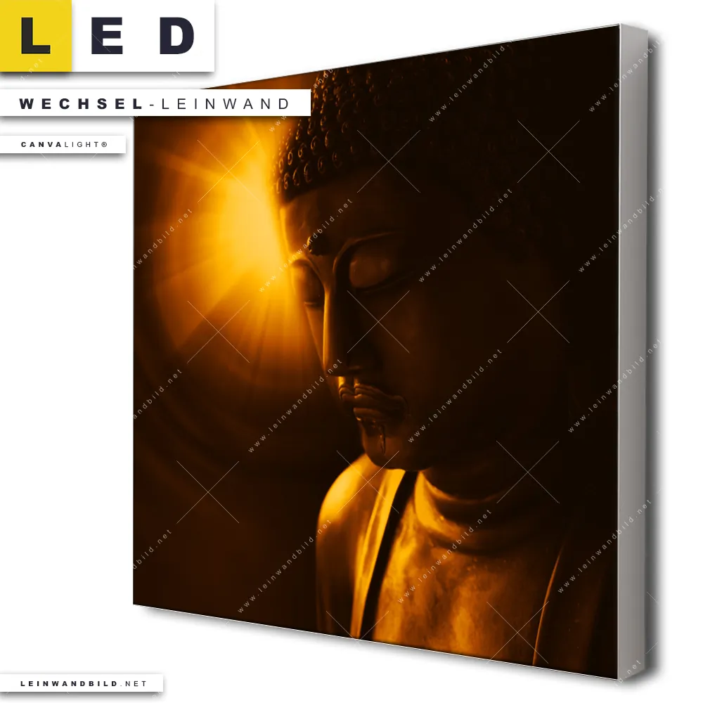 Du konfigurierst Deine individuelle LED Wechsel-Leinwand Canvalight® TEX | Licht der Weisheit | Quadrat und wir produzieren sie NEU für Dich. Unsere Buddha - Feng Shui Austausch-Fotoleinwände für Canvalight® LED Bilder sind KEINE Lagerware. Du bist Dir unsicher, welches Motiv oder Format das richtige für dein individuelles LED Wechselmotiv auf Leinwand ist, dann helfen wir dir gerne weiter und beraten dich!