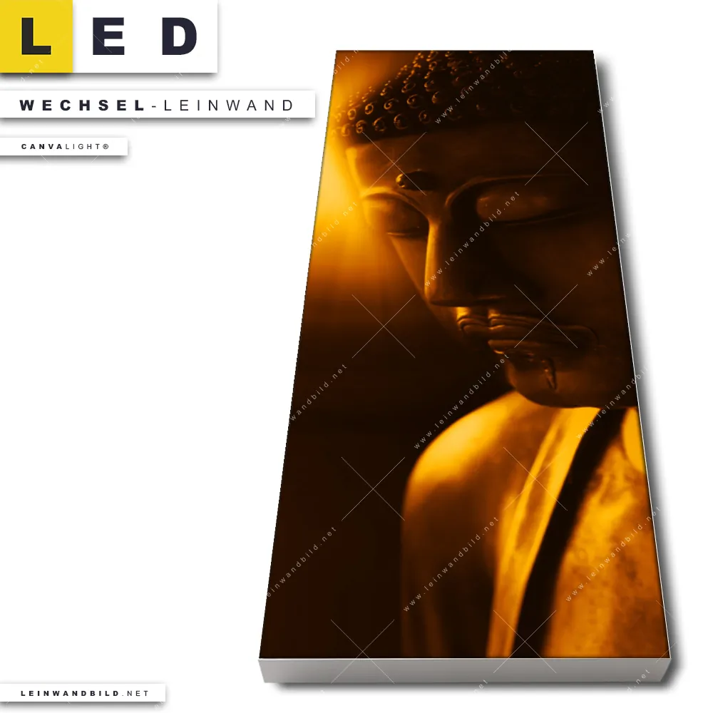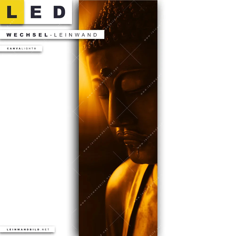 Du konfigurierst Deine individuelle LED Wechsel-Leinwand Canvalight® TEX | Licht der Weisheit | Schmal und wir produzieren sie NEU für Dich. Unsere Buddha - Feng Shui Austausch-Fotoleinwände für Canvalight® LED Bilder sind KEINE Lagerware. Du bist Dir unsicher, welches Motiv oder Format das richtige für dein individuelles LED Wechselmotiv auf Leinwand ist, dann helfen wir dir gerne weiter und beraten dich!