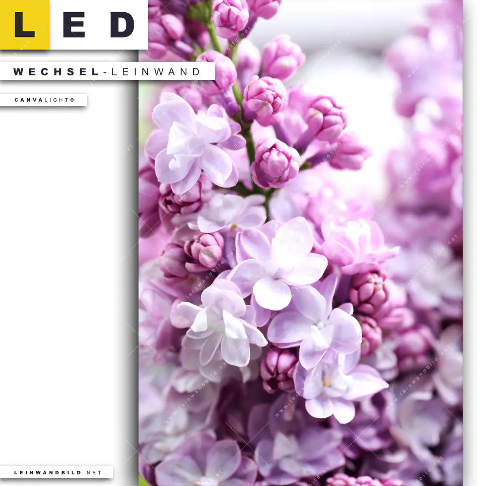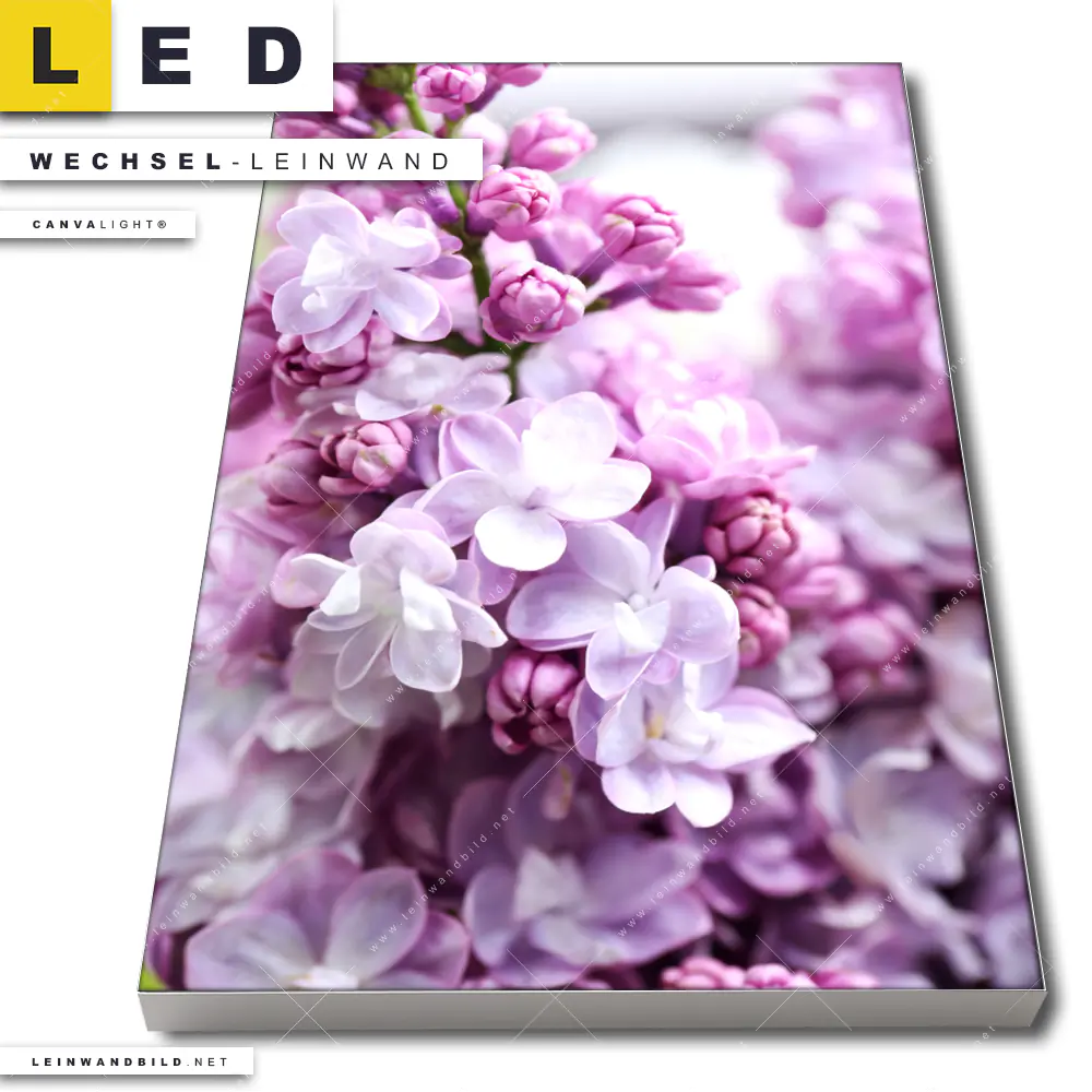 LED Wechsel-Leinwand Canvalight® TEX | Lila Fliederblüten | Hochformat