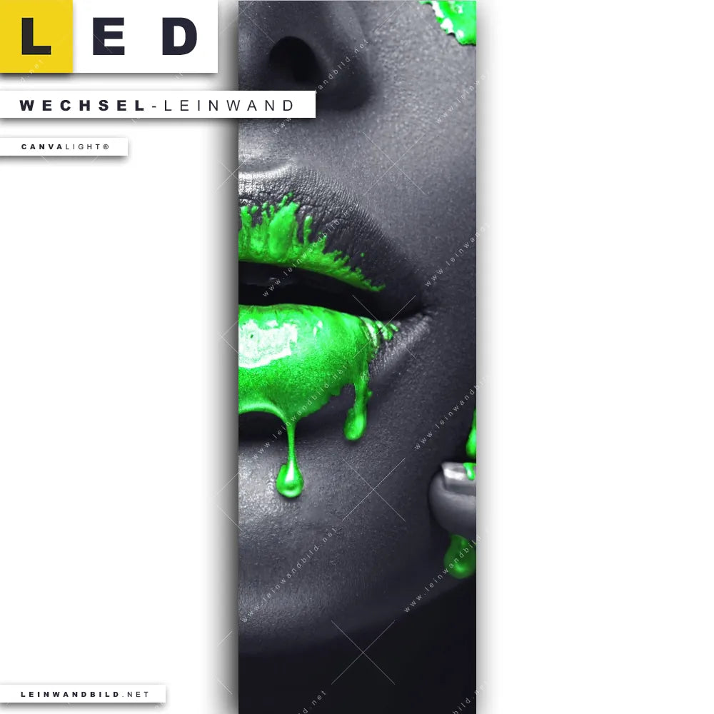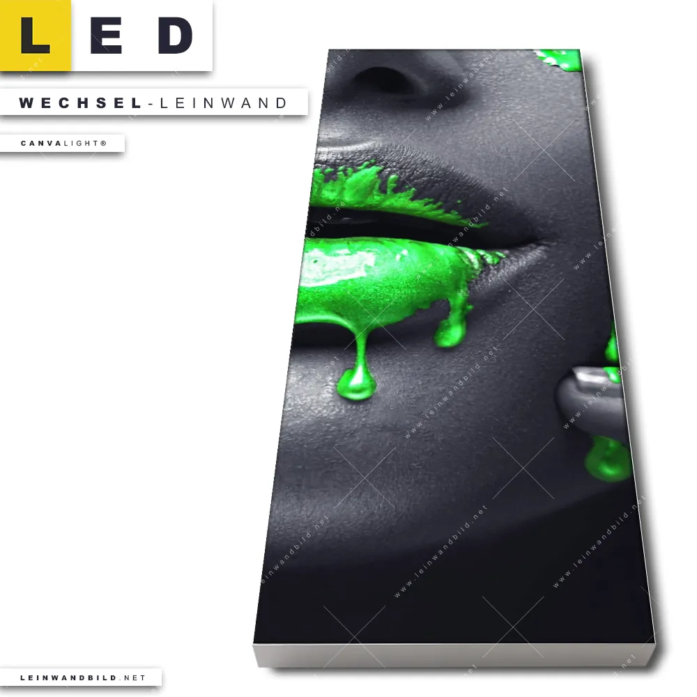 LED Wechsel-Leinwand Canvalight® TEX | Lippen Silber & Grün | Schmal