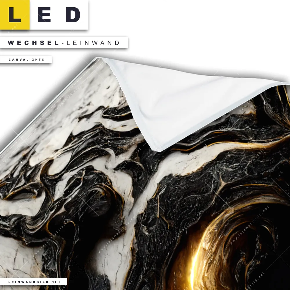 LED Wechsel-Leinwand Canvalight® TEX | Liquid Marmor Schwarz Gold | Querformat