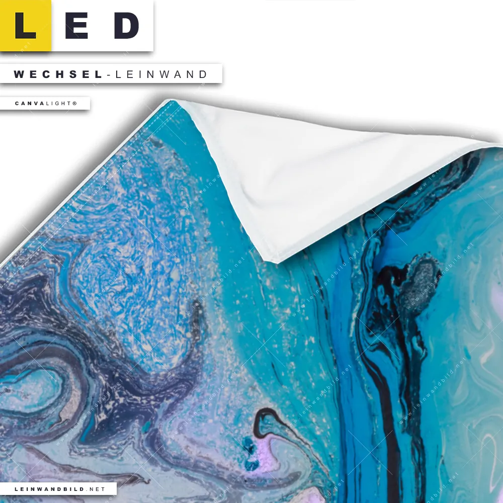 LED Wechsel-Leinwand Canvalight® TEX | Liquid Marmor Türkis Flieder | Hochformat