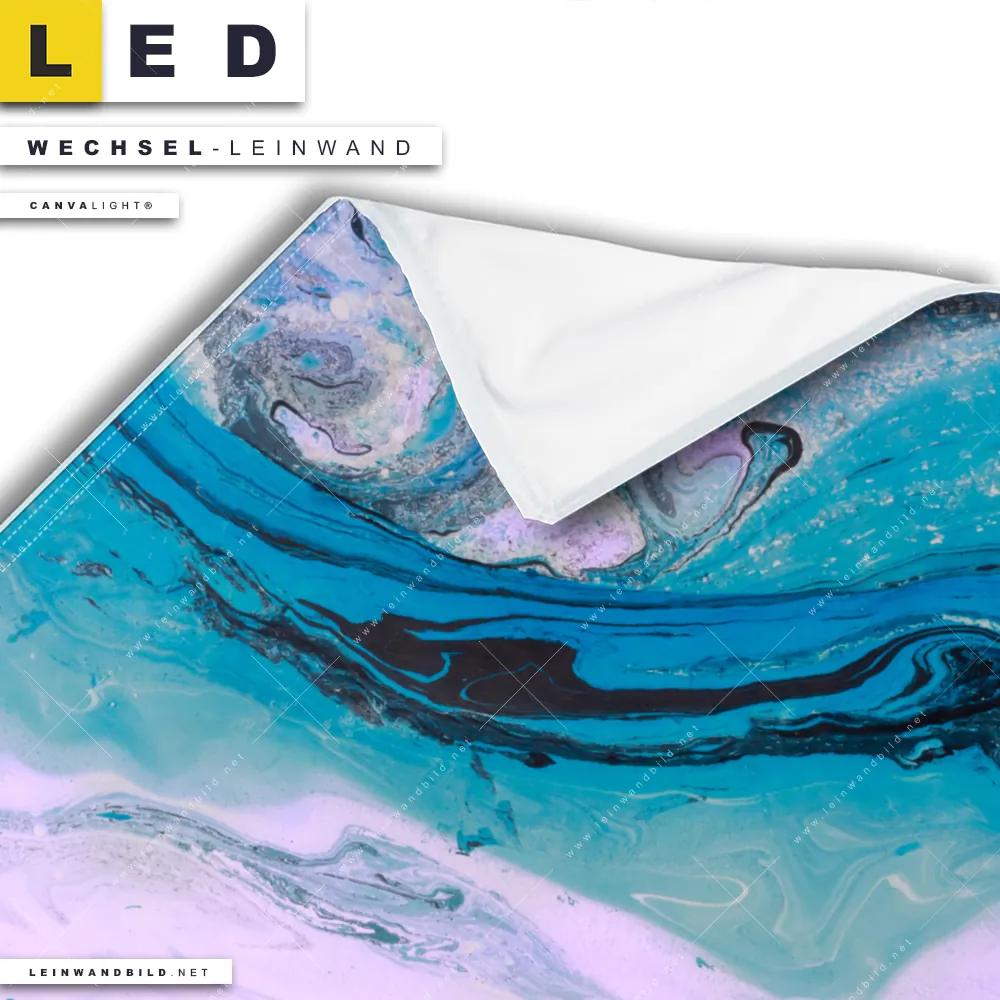 Du konfigurierst Deine individuelle LED Wechsel-Leinwand Canvalight® TEX | Liquid Marmor Türkis Flieder | Quadrat und wir produzieren sie NEU für Dich. Unsere Muster - Texturen Austausch-Fotoleinwände für Canvalight® LED Bilder sind KEINE Lagerware. Du bist Dir unsicher, welches Motiv oder Format das richtige für dein individuelles LED Wechselmotiv auf Leinwand ist, dann helfen wir dir gerne weiter und beraten dich!