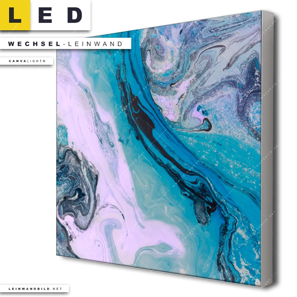 Du bist auf der Suche nach einer Muster - Texturen Wechsel-Leinwand für Dein LED-Leinwandbild im Quadratischen Format? Begriffe wie Marmor, Flüssigkeit, Acryl, flüssig, Farbe, Marmorierung, Fluid Art haben Dich auf der Suche nach Deiner Ersatz-Leinwand für dein LED Wandbild mit wechselbarer Leinwand inspiriert? Farben wie Türkis, Lila dürfen auf Deinem neuen Wechselmotiv für Dein XXL Leinwand-LED-Bild nicht fehlen und Leinwände im Abstrakt, Modern Art Stil für Leuchtbilder passen perfekt zu Deinem Einrichtungsstil?