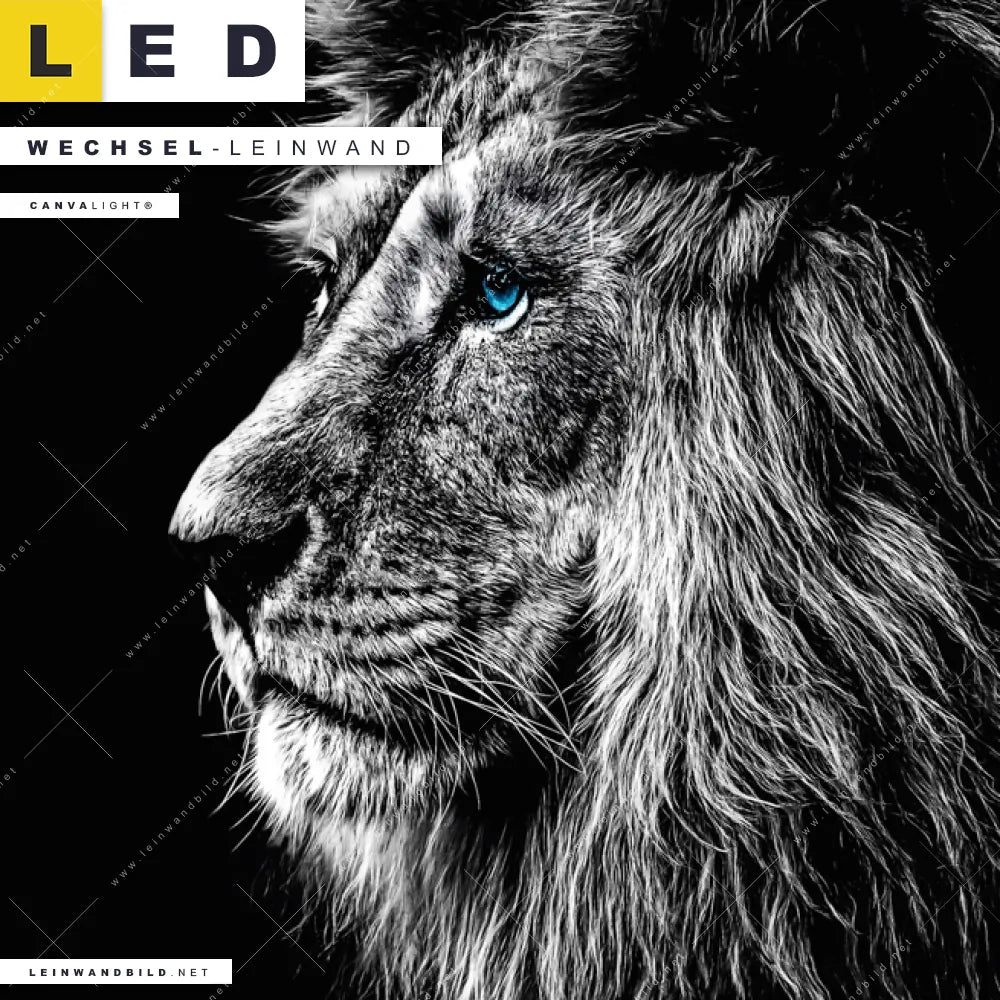 Du konfigurierst Deine individuelle LED Wechsel-Leinwand Canvalight® TEX | Löwe mit blauen Augen | Quadrat und wir produzieren sie NEU für Dich. Unsere Tierwelt Austausch-Fotoleinwände für Canvalight® LED Bilder sind KEINE Lagerware. Du bist Dir unsicher, welches Motiv oder Format das richtige für dein individuelles LED Wechselmotiv auf Leinwand ist, dann helfen wir dir gerne weiter und beraten dich!
