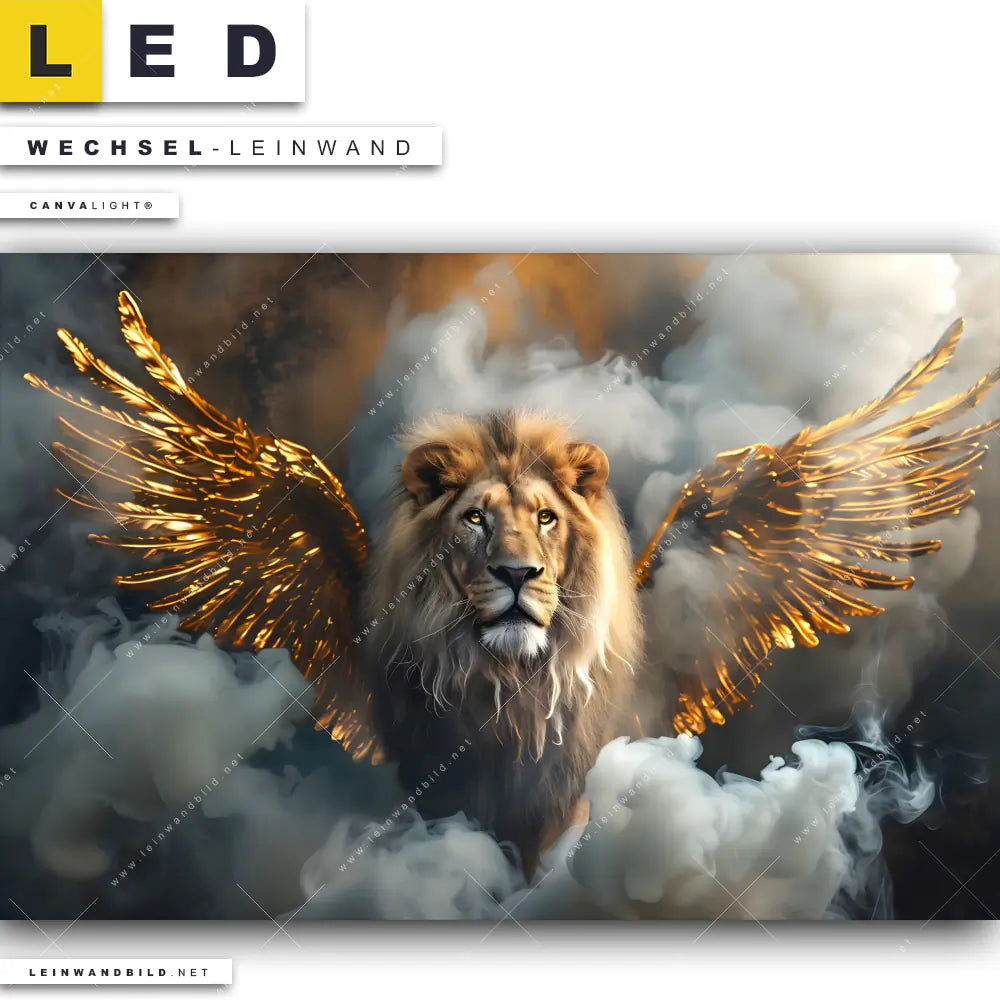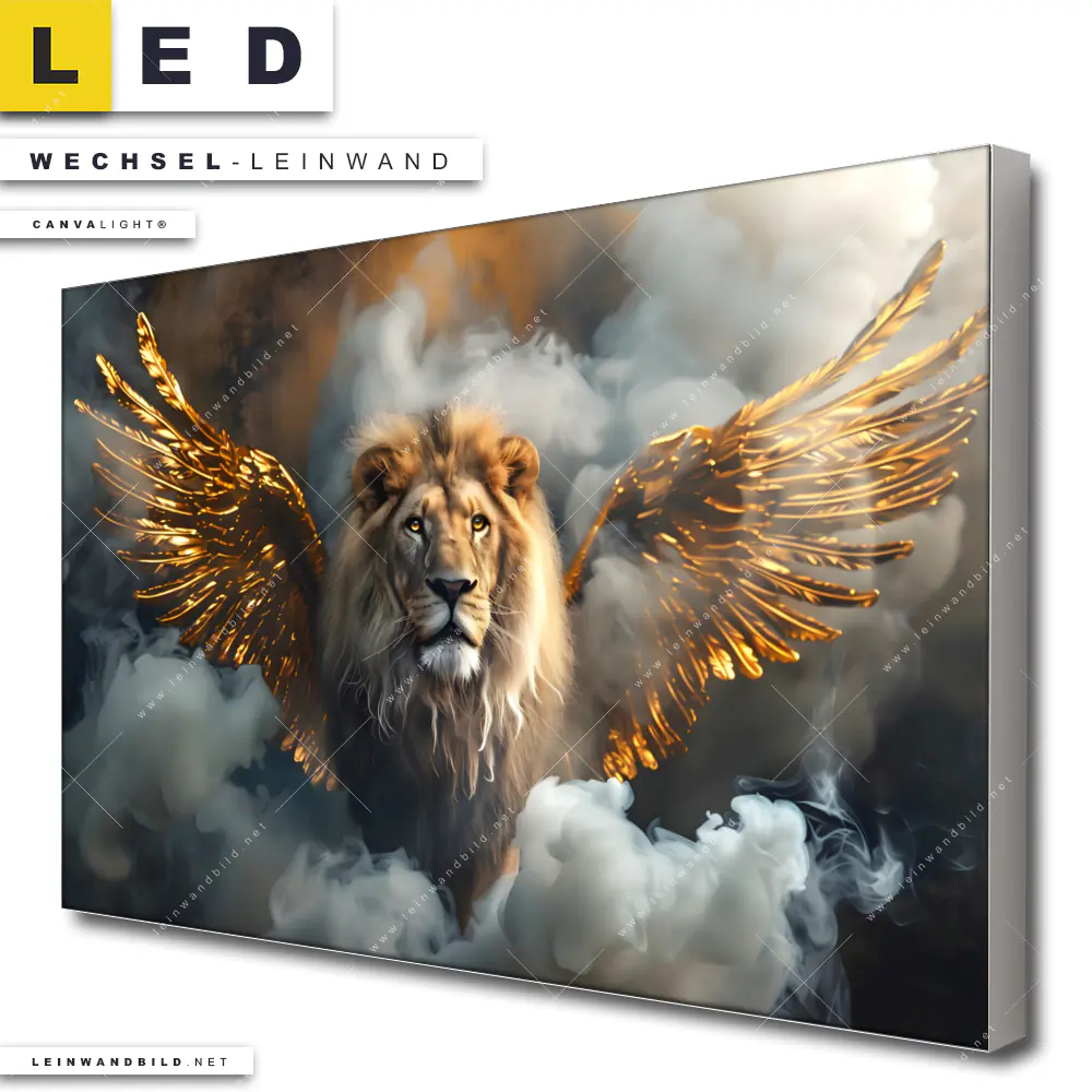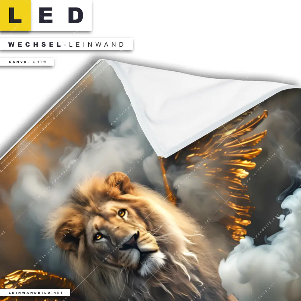 LED Wechsel-Leinwand Canvalight® TEX | Löwe mit goldenen Flügeln | Querformat