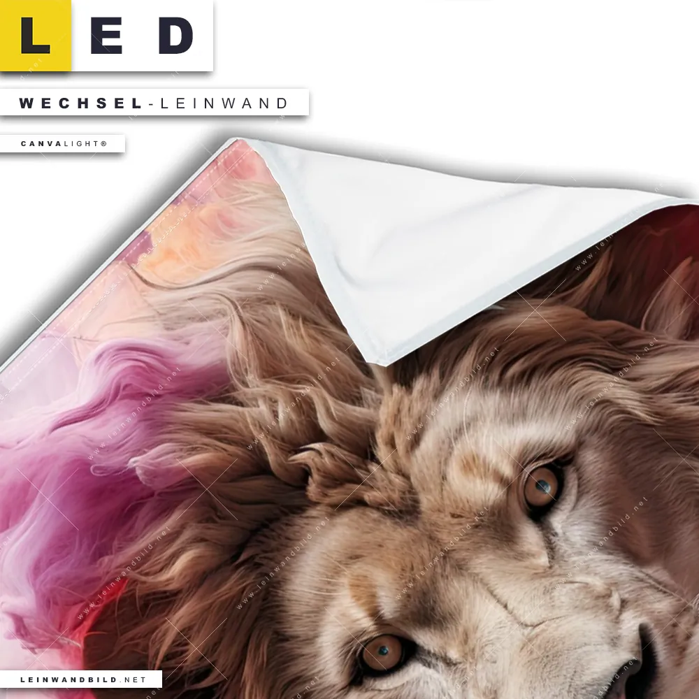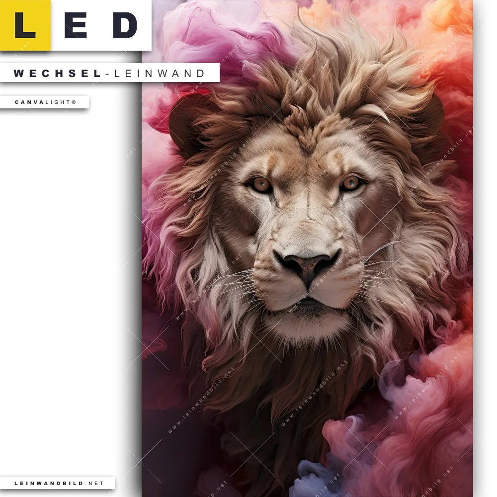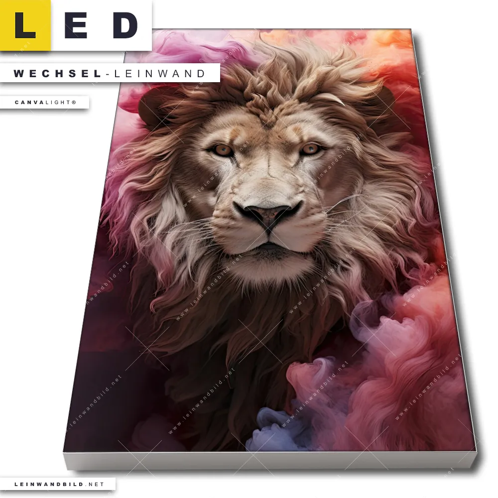 Du bist auf der Suche nach einer Tierwelt Wechsel-Leinwand für Dein LED-Leinwandbild im Hochformat? Begriffe wie Raubkatze, Löwe, Afrika, Dschungel, Lion, Rauch, Qualm, Wolken, Farbexplosion, Porträt haben Dich auf der Suche nach Deiner Ersatz-Leinwand für dein LED Wandbild mit wechselbarer Leinwand inspiriert? Farben wie Beige, Pink, Rot dürfen auf Deinem neuen Wechselmotiv für Dein XXL Leinwand-LED-Bild nicht fehlen und Leinwände im Modern Art, Abstrakt Stil für Leuchtbilder passen perfekt zu Deinem Einrichtungsstil?