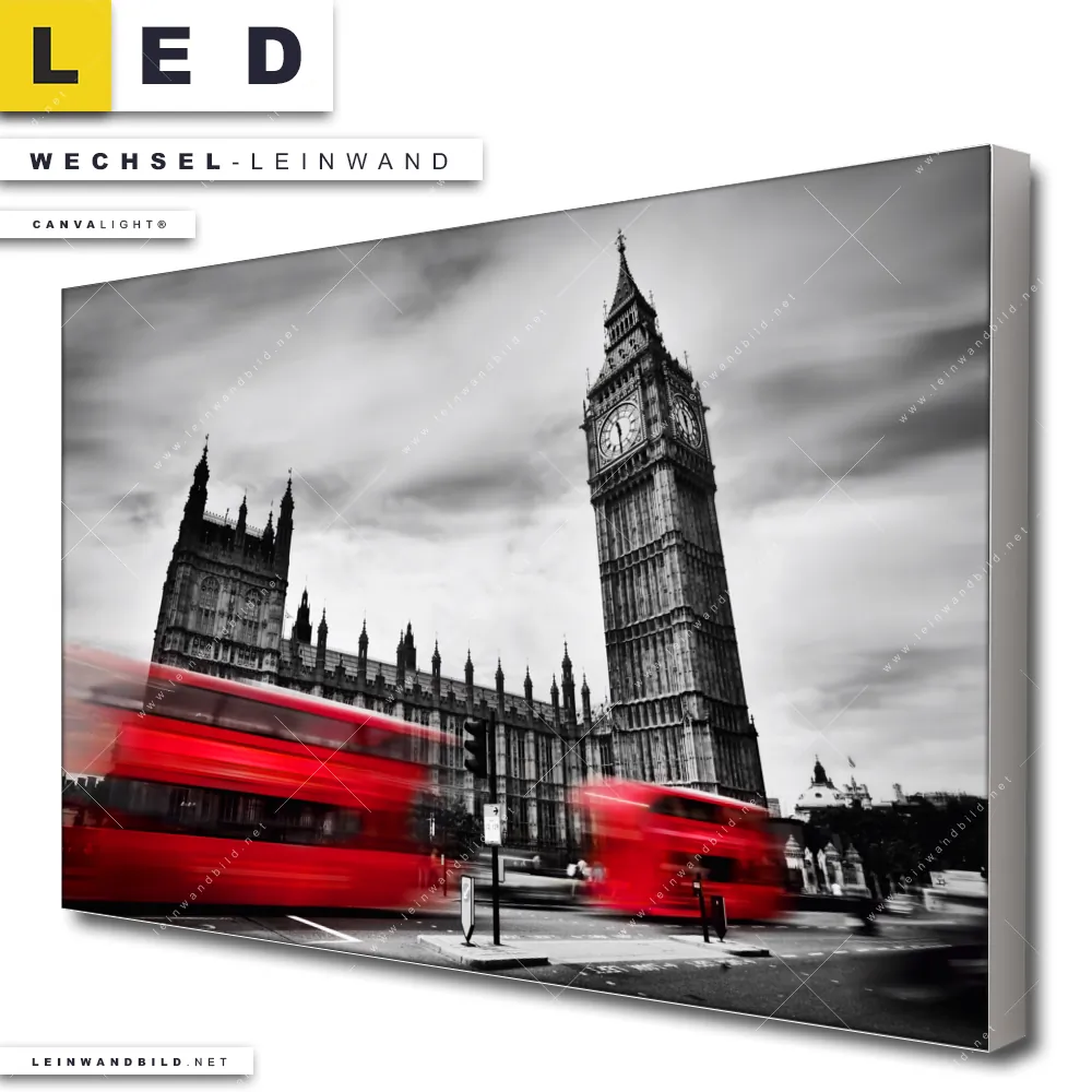 Du bist auf der Suche nach einer Städte - Skylines Wechsel-Leinwand für Dein LED-Leinwandbild im Querformat? Begriffe wie Sehenswürdigkeiten, Schwarzweiss, London England, Bus, Big Ben, Großbritannien, Westminster haben Dich auf der Suche nach Deiner Ersatz-Leinwand für dein breites LED Wandbild mit wechselbarer Leinwand inspiriert? Farben wie Weiss, Schwarz, Rot dürfen auf Deinem neuen Wechselmotiv für Dein XXL Leinwand-LED-Bild nicht fehlen und Leinwände im Modern Art, Mixed Media Stil für Leuchtbilder passen perfekt zu Deinem Einrichtungsstil?