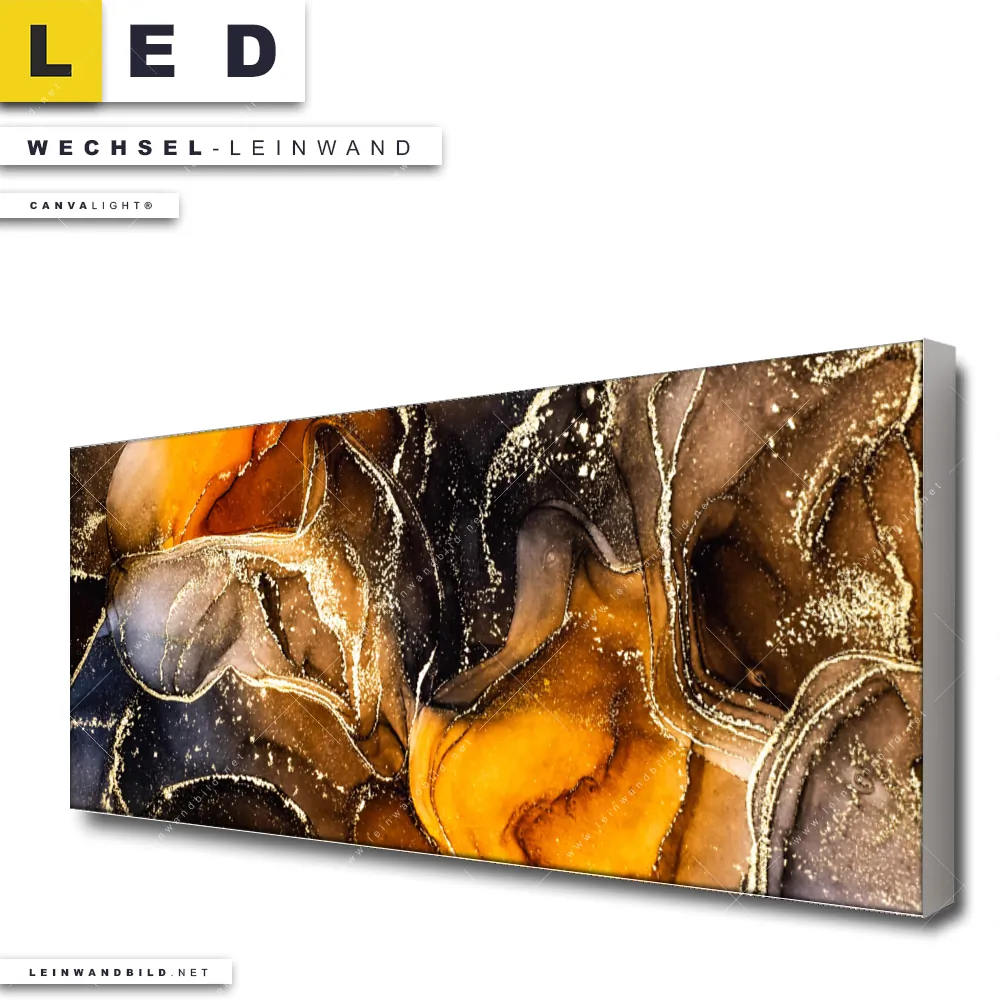 Du bist auf der Suche nach einer Muster - Texturen Wechsel-Leinwand für Dein LED-Leinwandbild im Panorama-Format? Begriffe wie Flüssigkeit, Acryl, flüssig, Farbe, Marmorierung, Fluid Art haben Dich auf der Suche nach Deiner Ersatz-Leinwand für dein extra breites LED Wandbild mit wechselbarer Leinwand inspiriert? Farben wie Gold, Braun, Rot, Ocker, Blau, Orange dürfen auf Deinem neuen Wechselmotiv für Dein XXL Leinwand-LED-Bild nicht fehlen und Leinwände im Abstrakt, Modern Art Stil für Leuchtbilder passen perfekt zu Deinem Einrichtungsstil?