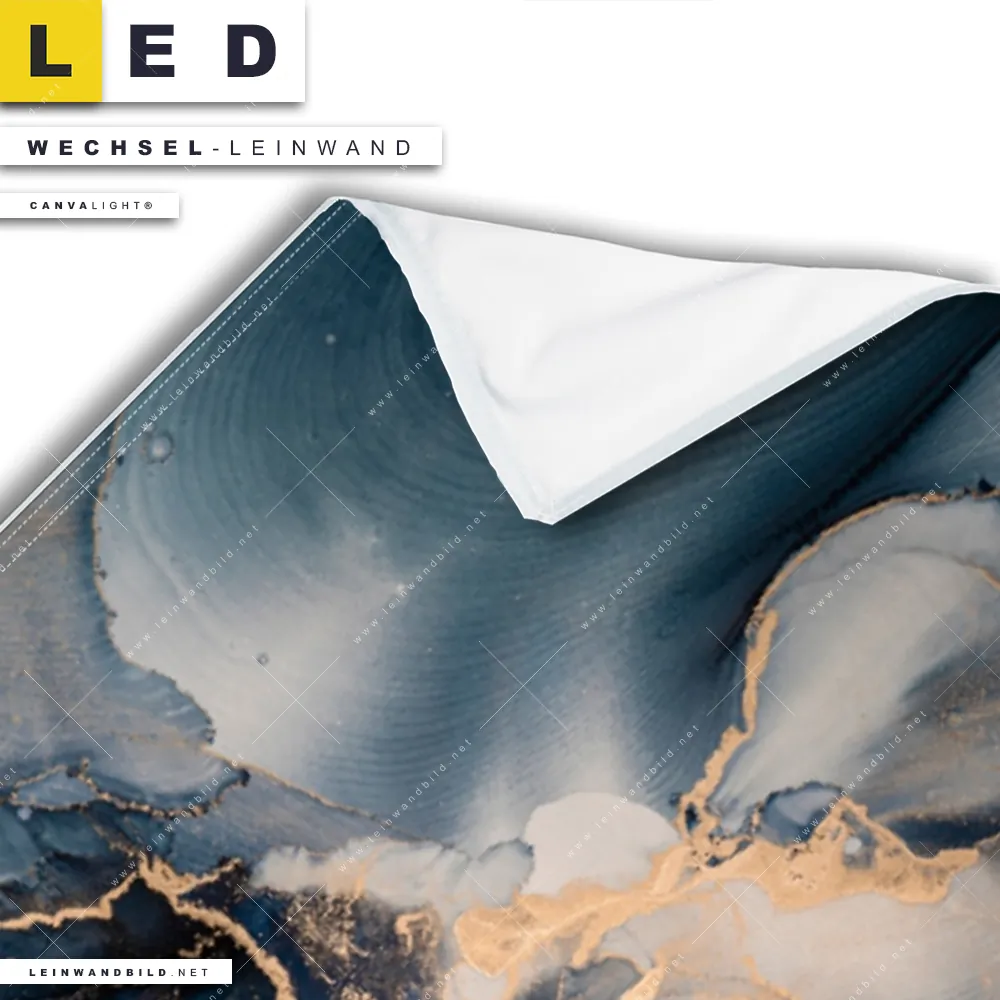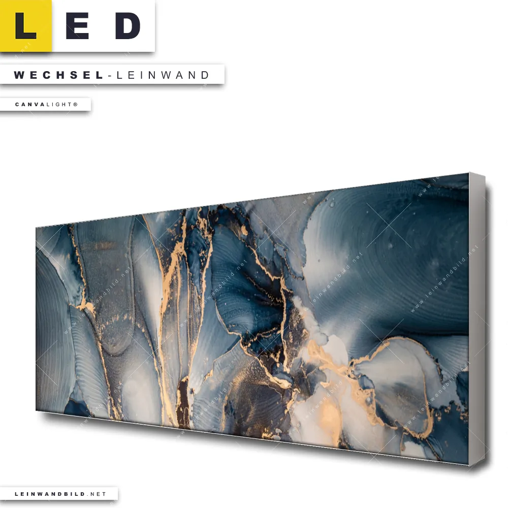 Du bist auf der Suche nach einer Muster - Texturen Wechsel-Leinwand für Dein LED-Leinwandbild im Panorama-Format? Begriffe wie Flüssigkeit, Acryl, flüssig, Farbe, Marmorierung, Tinte, Alkohol, Fluid Art haben Dich auf der Suche nach Deiner Ersatz-Leinwand für dein extra breites LED Wandbild mit wechselbarer Leinwand inspiriert? Farben wie Gold, Weiss, Blau dürfen auf Deinem neuen Wechselmotiv für Dein XXL Leinwand-LED-Bild nicht fehlen und Leinwände im Abstrakt, Modern Art Stil für Leuchtbilder passen perfekt zu Deinem Einrichtungsstil?