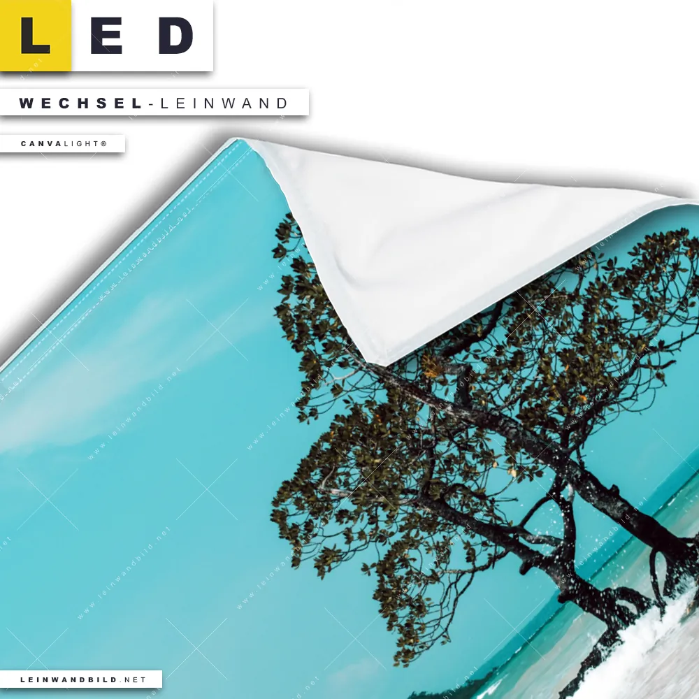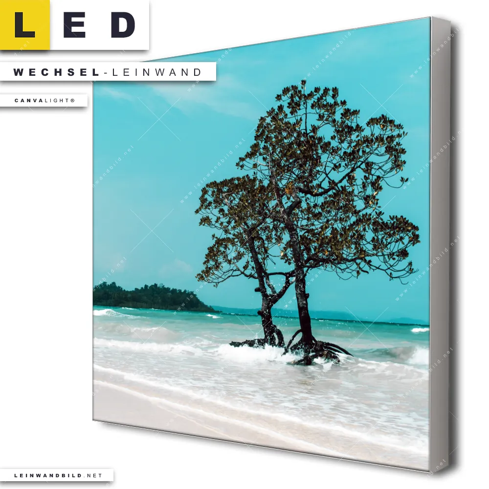 Du bist auf der Suche nach einer Strand - Meer, Landschaften Wechsel-Leinwand für Dein LED-Leinwandbild im Quadratischen Format? Begriffe wie Küste, Landschaft, Sommer, Südsee - Karibik, Urlaub - Reisen haben Dich auf der Suche nach Deiner Ersatz-Leinwand für dein LED Wandbild mit wechselbarer Leinwand inspiriert? Farben wie Türkis, Blau, Beige dürfen auf Deinem neuen Wechselmotiv für Dein XXL Leinwand-LED-Bild nicht fehlen und Leinwände im Natürlich - Realistisch Stil für Leuchtbilder passen perfekt zu Deinem Einrichtungsstil?