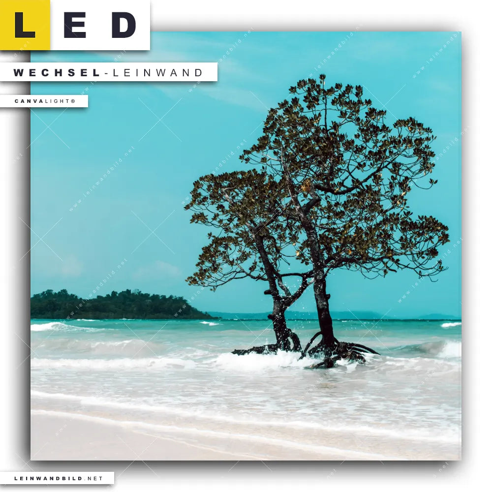 Du konfigurierst Deine individuelle LED Wechsel-Leinwand Canvalight® TEX | Mangrovenbaum im Wasser | Quadrat und wir produzieren sie NEU für Dich. Unsere Strand - Meer, Landschaften Austausch-Fotoleinwände für Canvalight® LED Bilder sind KEINE Lagerware. Du bist Dir unsicher, welches Motiv oder Format das richtige für dein individuelles LED Wechselmotiv auf Leinwand ist, dann helfen wir dir gerne weiter und beraten dich!