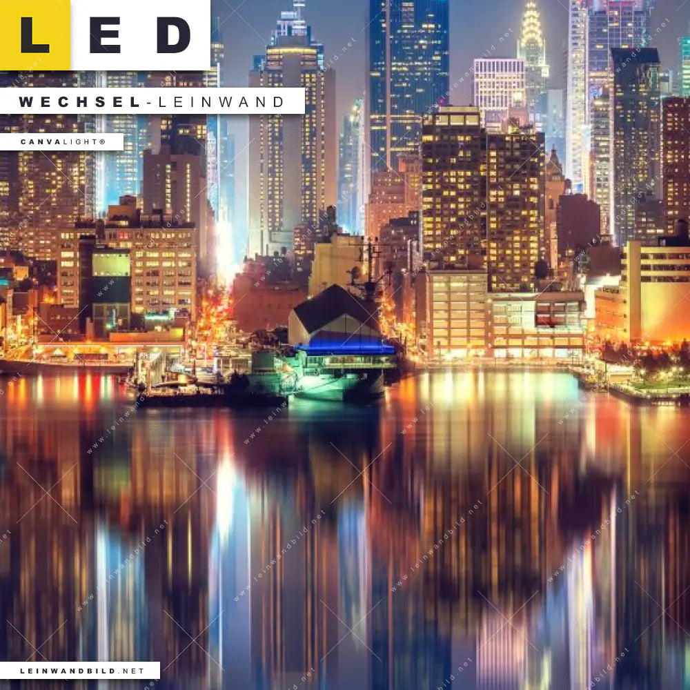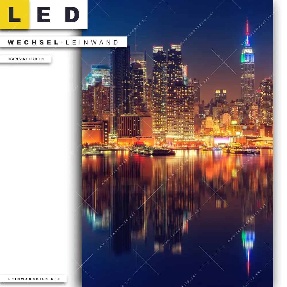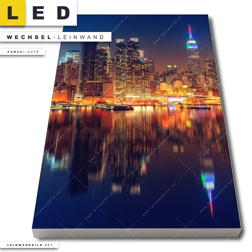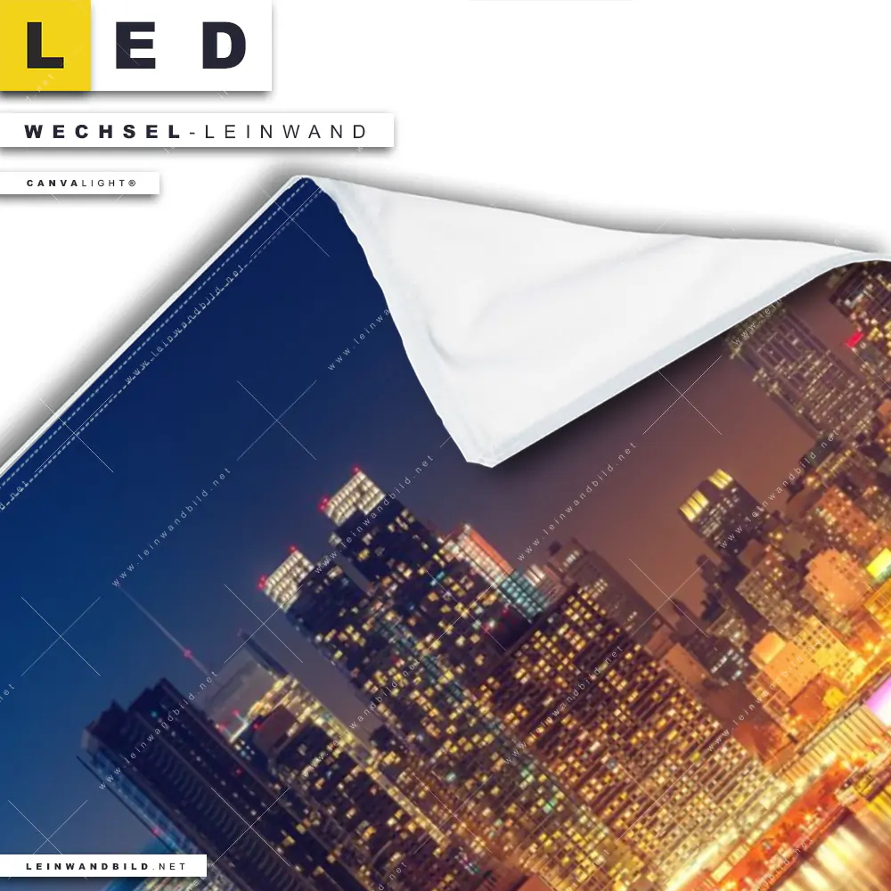 LED Wechsel-Leinwand Canvalight® TEX | Manhattan bei Nacht | Hochformat