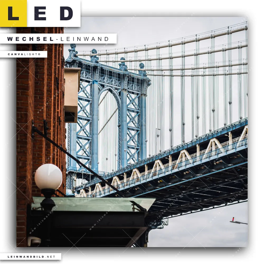 Du bist auf der Suche nach einer Architektur - Gebäude, Städte - Skylines Wechsel-Leinwand für Dein LED-Leinwandbild im Quadratischen Format? Begriffe wie Brücke, New York City, Skyline, Manhatten, Amerika, New York, USA haben Dich auf der Suche nach Deiner Ersatz-Leinwand für dein LED Wandbild mit wechselbarer Leinwand inspiriert? Farben wie Braun, Beige, Blau, Hellblau, Ocker, Rot dürfen auf Deinem neuen Wechselmotiv für Dein XXL Leinwand-LED-Bild nicht fehlen und Leinwände im Natürlich - Realistisch, Modern Art Stil für Leuchtbilder passen perfekt zu Deinem Einrichtungsstil?