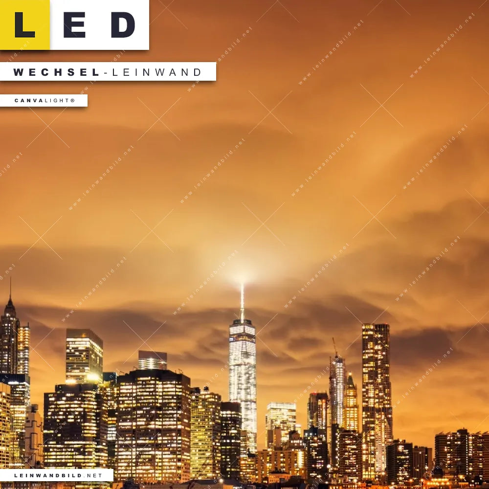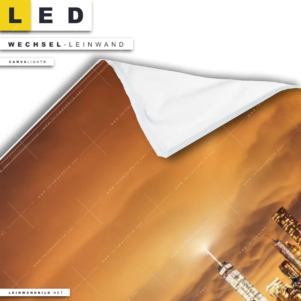 LED Wechsel-Leinwand Canvalight® TEX | Manhatten bei Sonnenuntergang | Hochformat